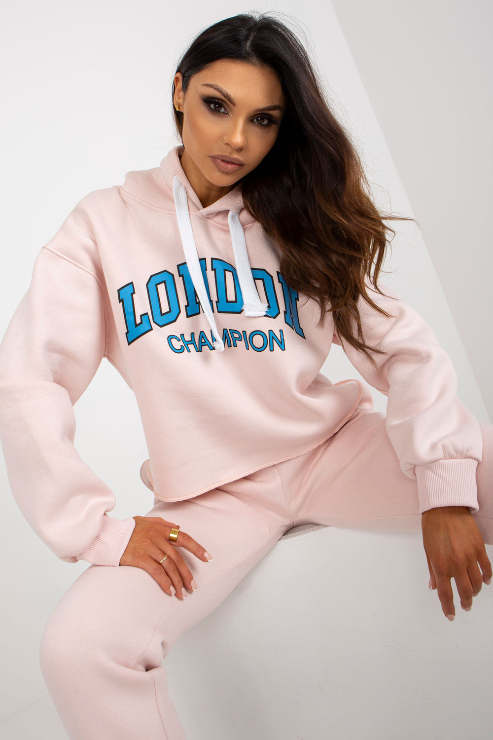 Hele roosa ja sinine dressipluusi komplekt Laraina tekstiga.