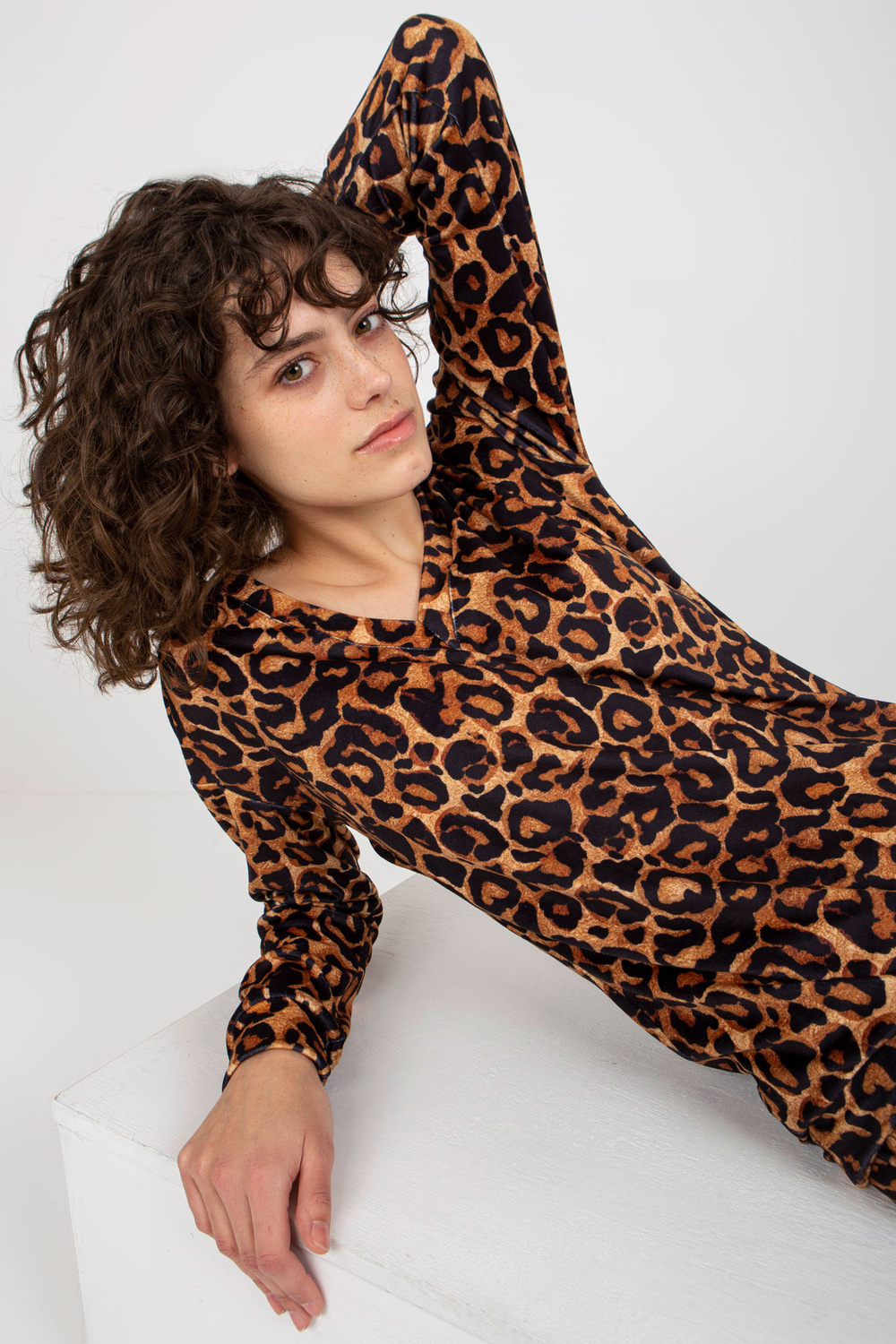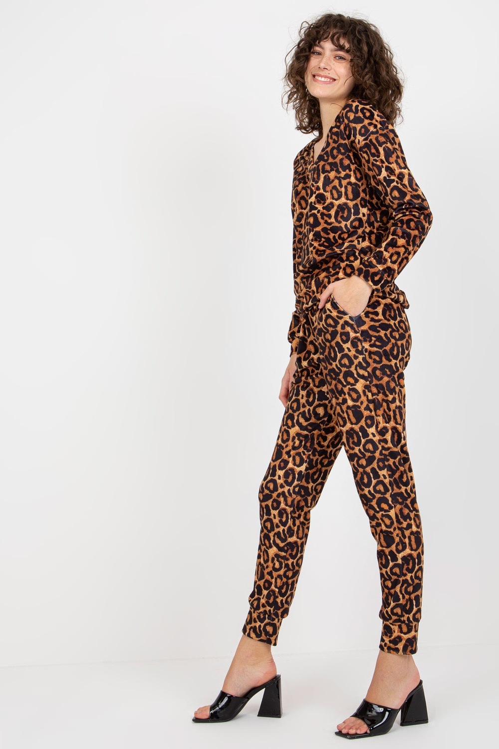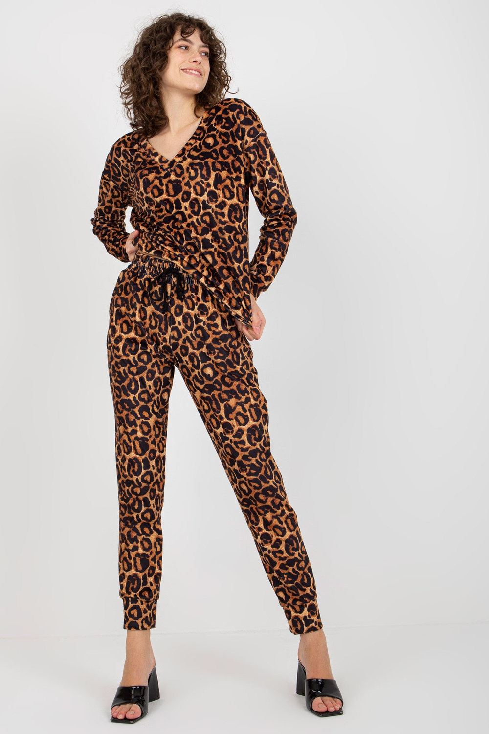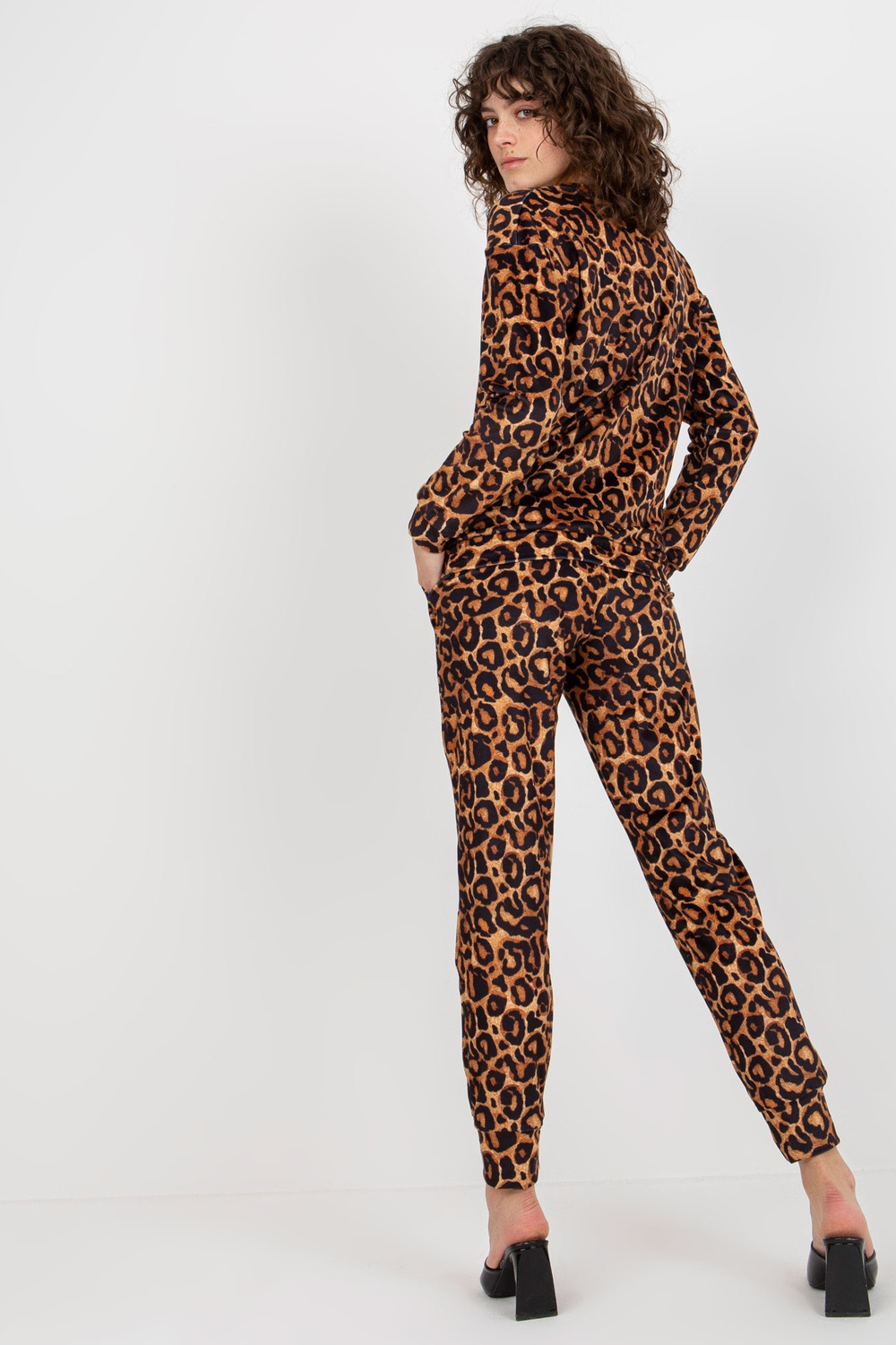 Tumebeež ja must naiste leopardveluurkomplekt.