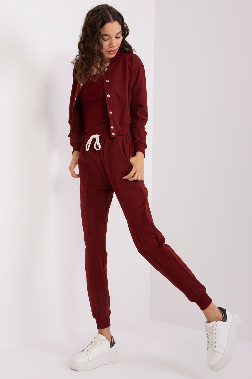 Burgundia naiste dressikomplekt koos bomber-sviitriga .