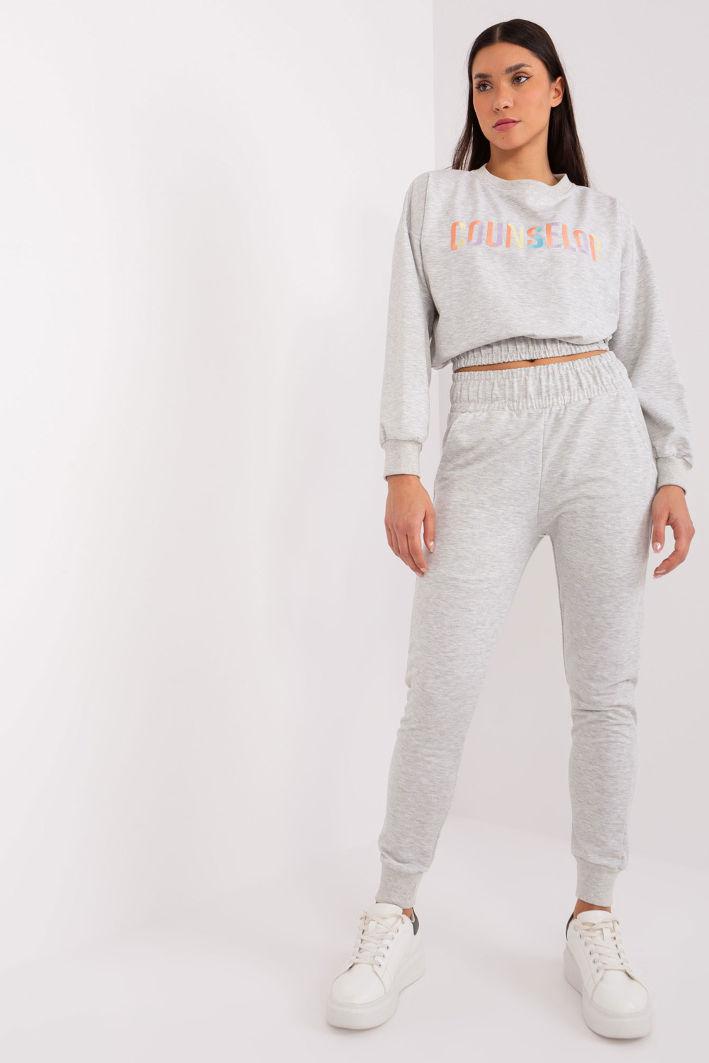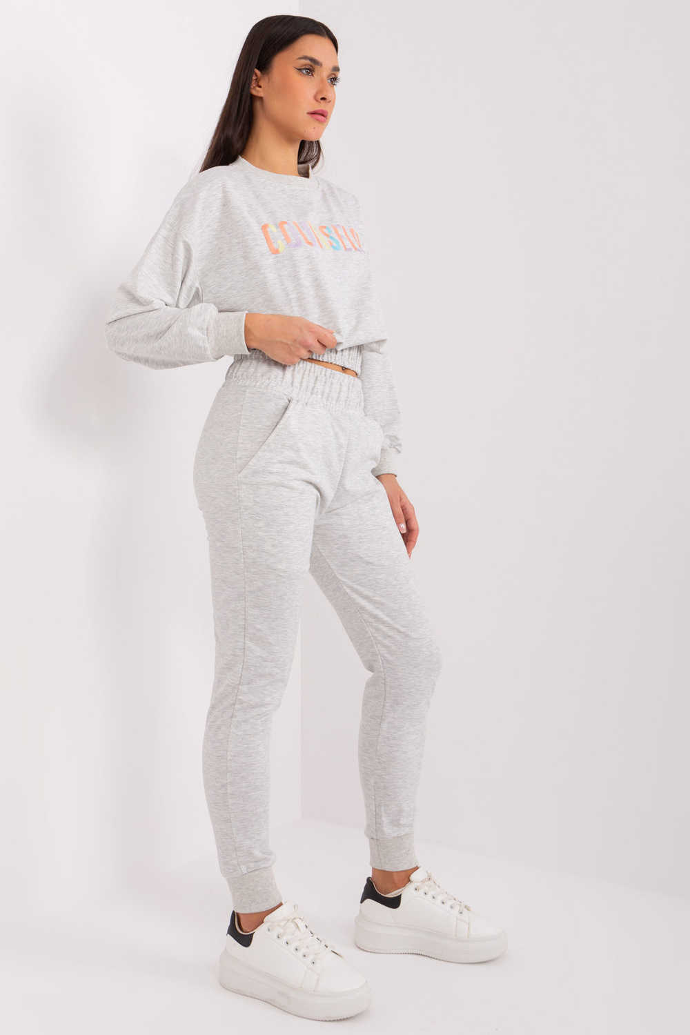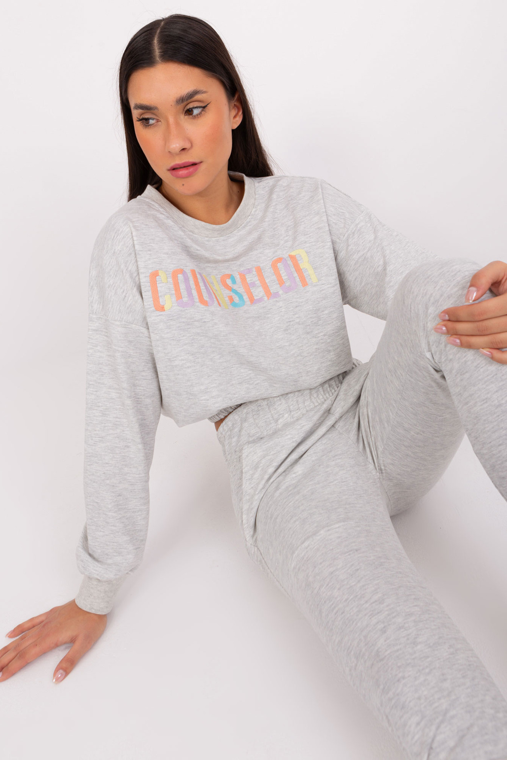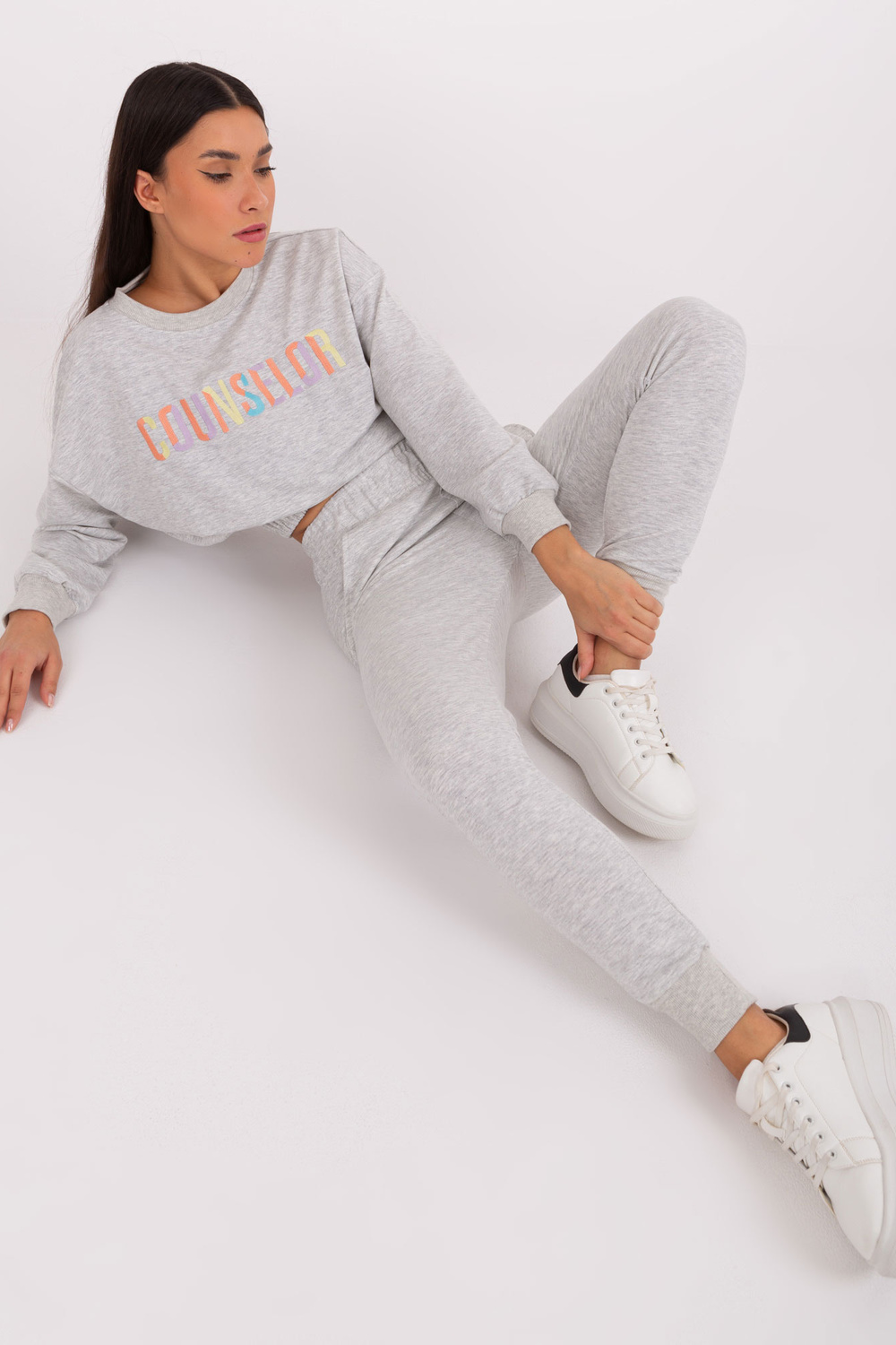 Helehall vabaaja komplekt värvilise kirjaga dressipluusiga .