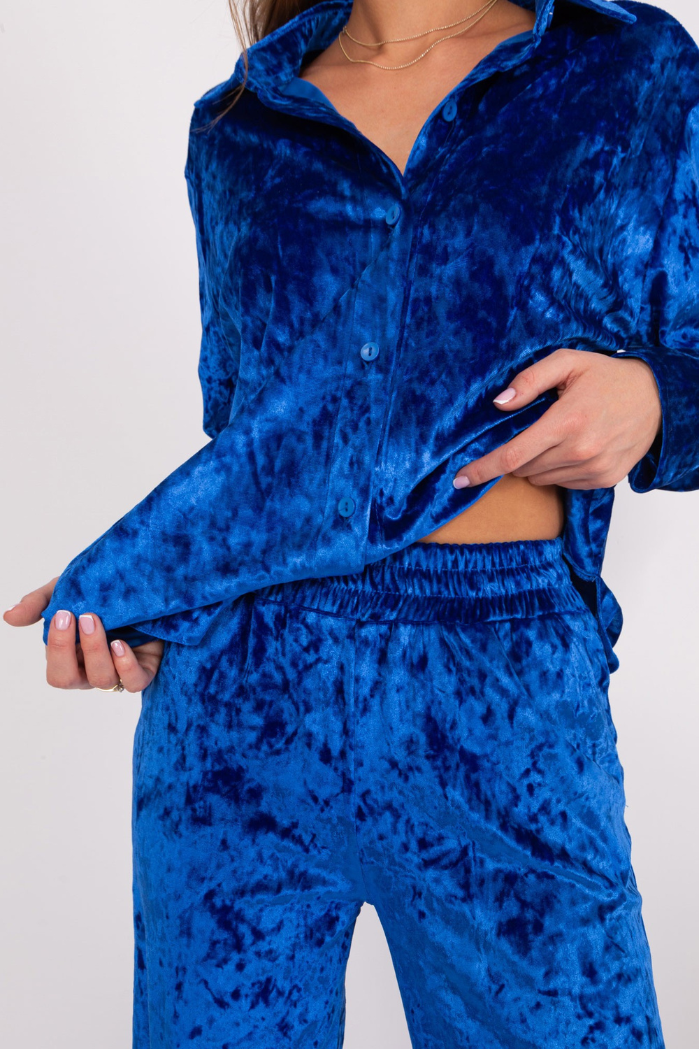Komplekti mõõdud S/M suuruses tasapinnaliselt mõõdetuna: särgi laius kaenla alt - 58 cm, varruka pikkus - 60 cm, särgi pikkus - 70 cm, pükste vöö laius - 31 cm, vöö kõrgus - 34 cm, pükste pikkus - 110 cm.