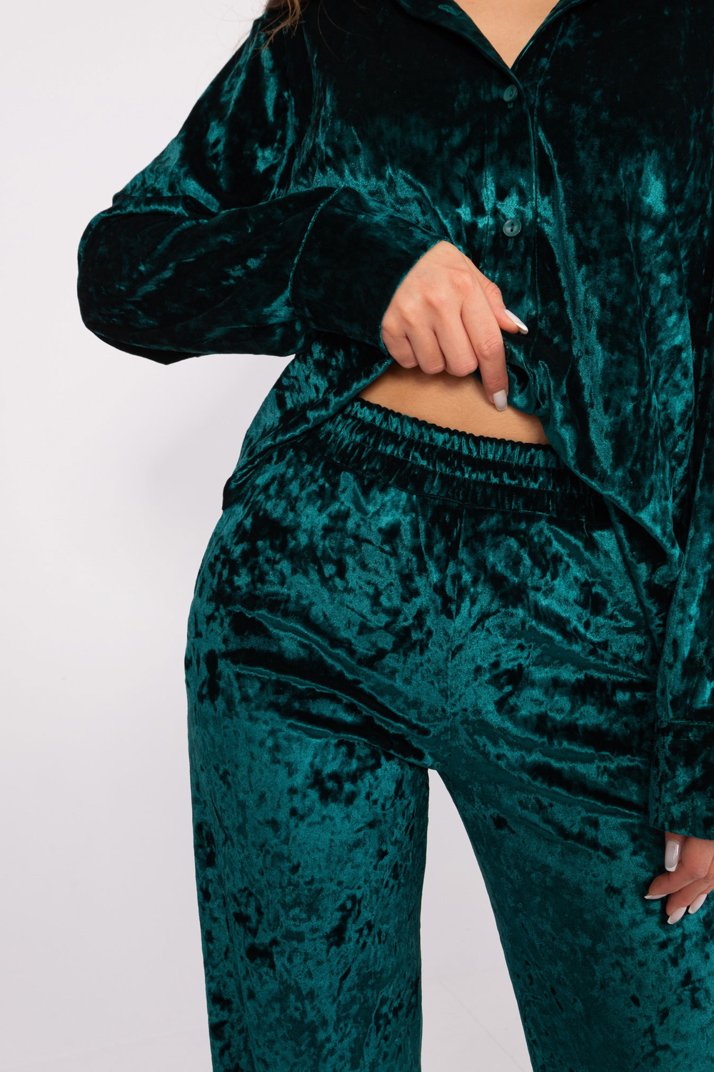 Komplekti mõõdud S/M suuruses tasapinnaliselt mõõdetuna: särgi laius kaenla alt - 58 cm, varruka pikkus - 60 cm, särgi pikkus - 70 cm, pükste vöö laius - 31 cm, vöö kõrgus - 34 cm, pükste pikkus - 110 cm.