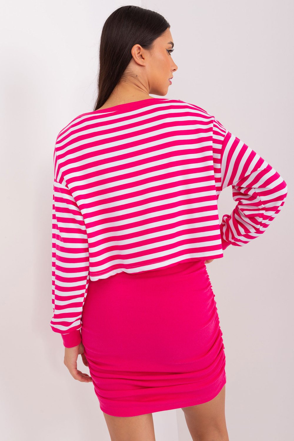 Fuksia ja valge põhikomplekt koos volangi kleidiga .