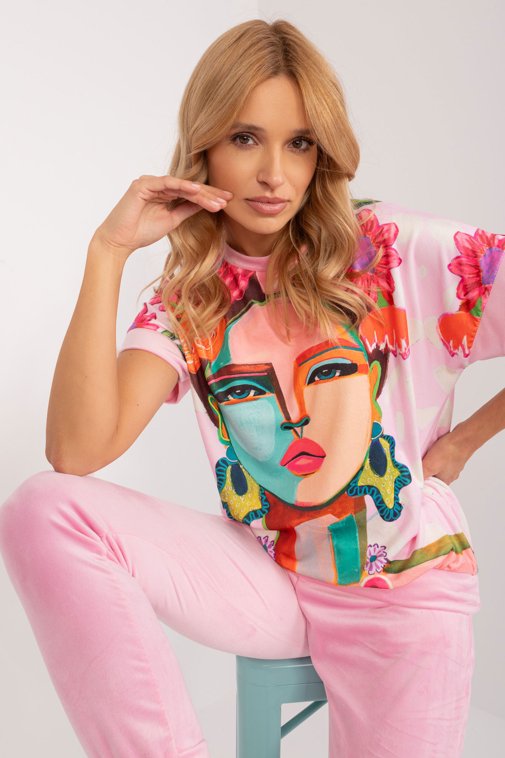 Komplekti mõõdud ühes suuruses, mõõdetuna tasaseks: pluusi laius kaenla alt - 64 cm, pluusi pikkus - 65 cm, pükste laius vööst - 36 cm, pükste kõrgus vööst - 32 cm, pükste pikkus - 94 cm