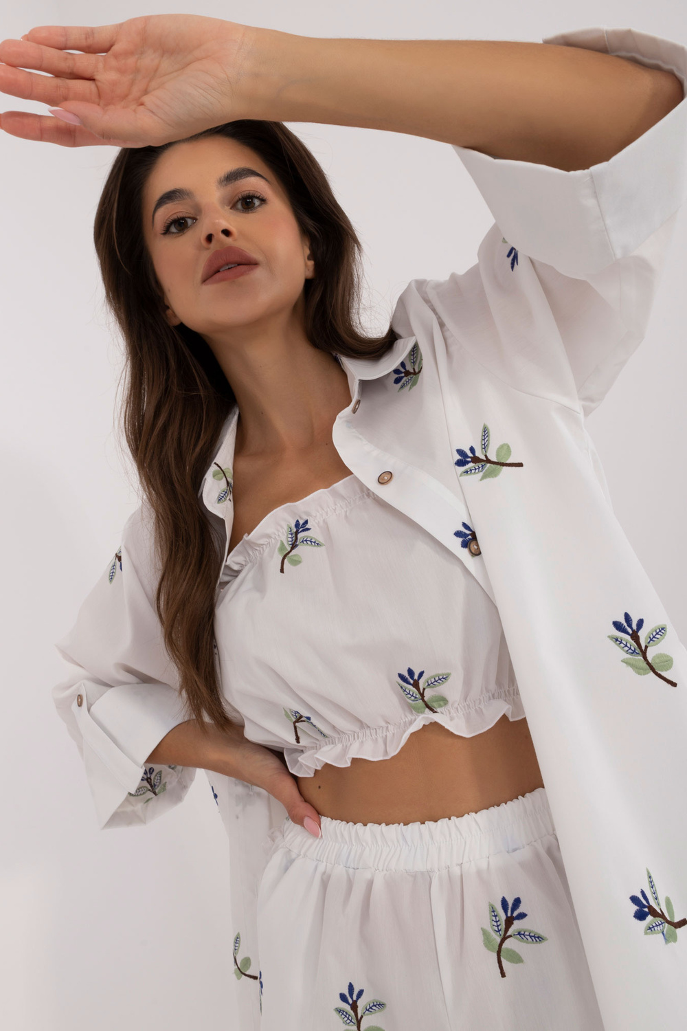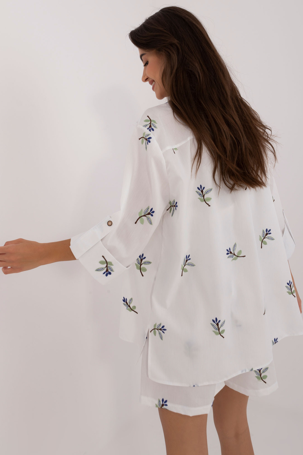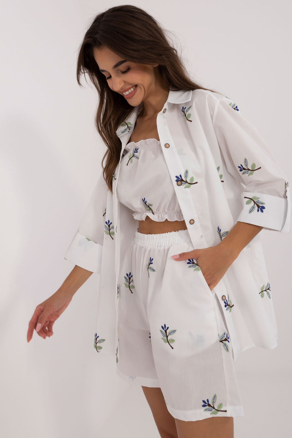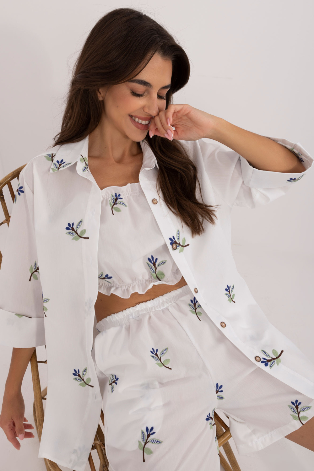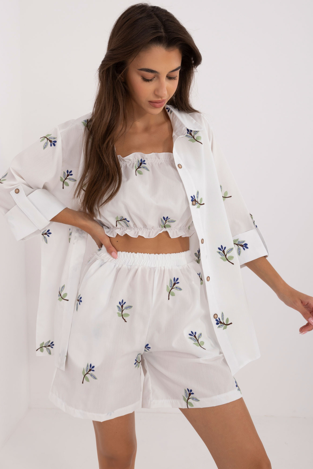 Komplekti mõõdud suuruses S/M tasapinnaliselt mõõdetuna: särgi laius kaenla alt - 45 cm, varruka pikkus - 40 cm, särgi pikkus - 72 cm, ülemise osa pikkus - 22 cm, ülemise laius kaenla alt - 32 cm, lühikeste pükste vöökoht laius - 46 cm, lühikeste pükste pikkus - 95 cm.