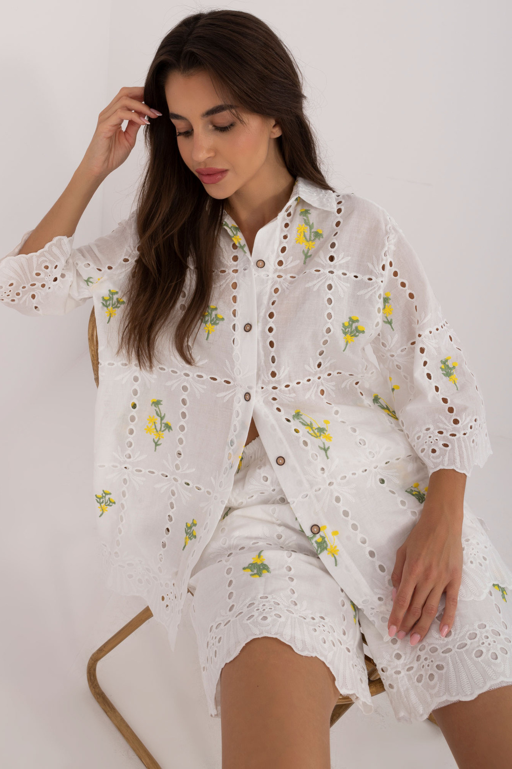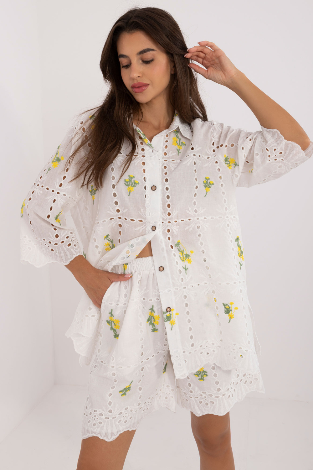 Komplekti mõõdud S/M suuruses mõõdetuna tasapinnaliselt: särgi laius kaenla alt - 58 cm, varruka pikkus - 40 cm, särgi pikkus - 71 cm, lühikeste pükste vöö laius - 32 cm, lühikeste pükste pikkus - 43 cm.
