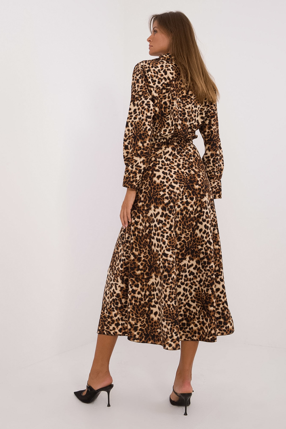 Modell kannab suurust one. Modelli mõõdud: kõrgus 176 cm, rind 85 cm, vöö 64 cm, puus 92 cm.