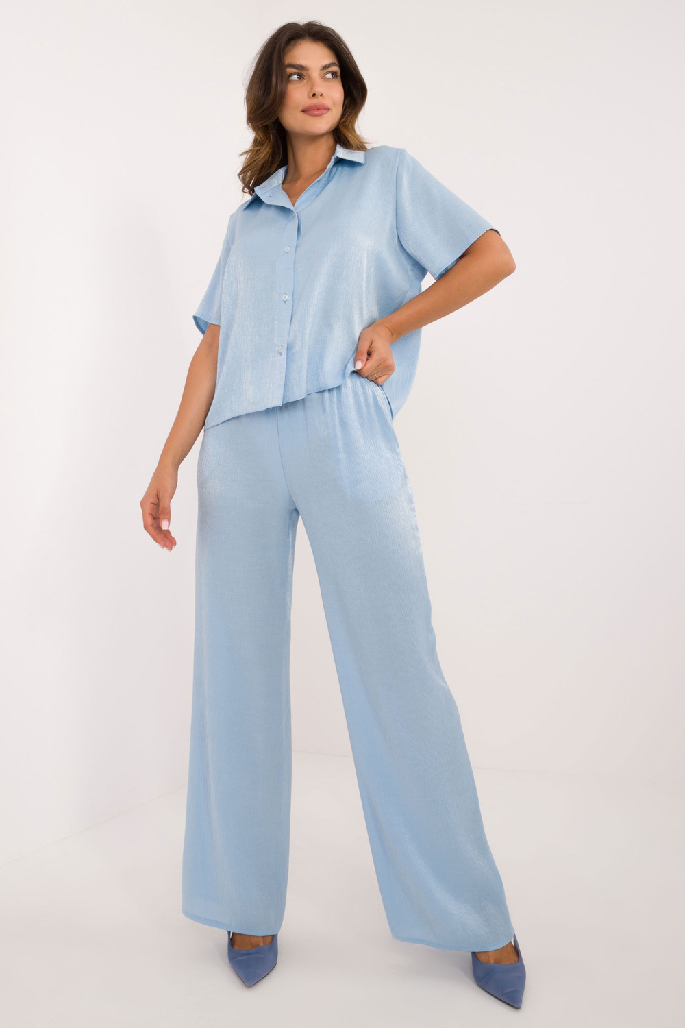 Komplekti mõõdud suuruses S/M. mõõdetuna tasaseks: särgi laius kaenla alt - 57 cm, särgi pikkus - 56 cm, pükste laius vööst - 33 cm, pükste pikkus - 112 cm.