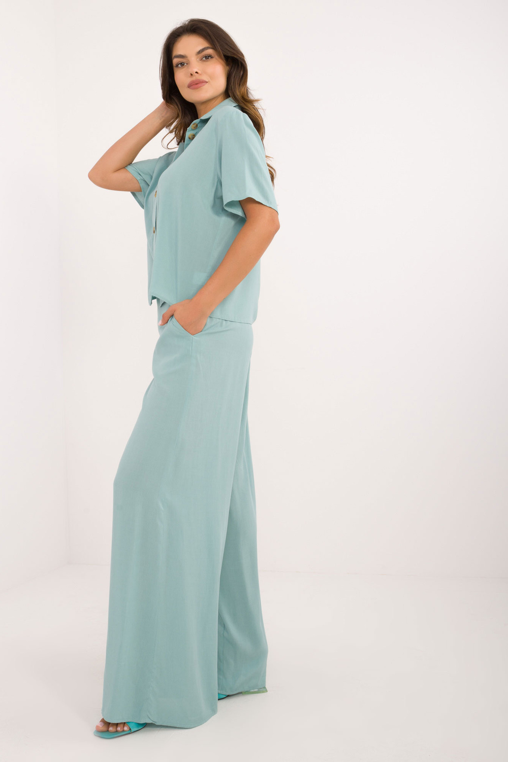 Komplekti mõõdud S/M suuruses tasapinnaliselt mõõdetuna: särgi laius kaenla alt - 55 cm, särgi pikkus - 57 cm, pükste vöö laius - 34 cm, vöö kõrgus - 30 cm, pükste pikkus - 114 cm.