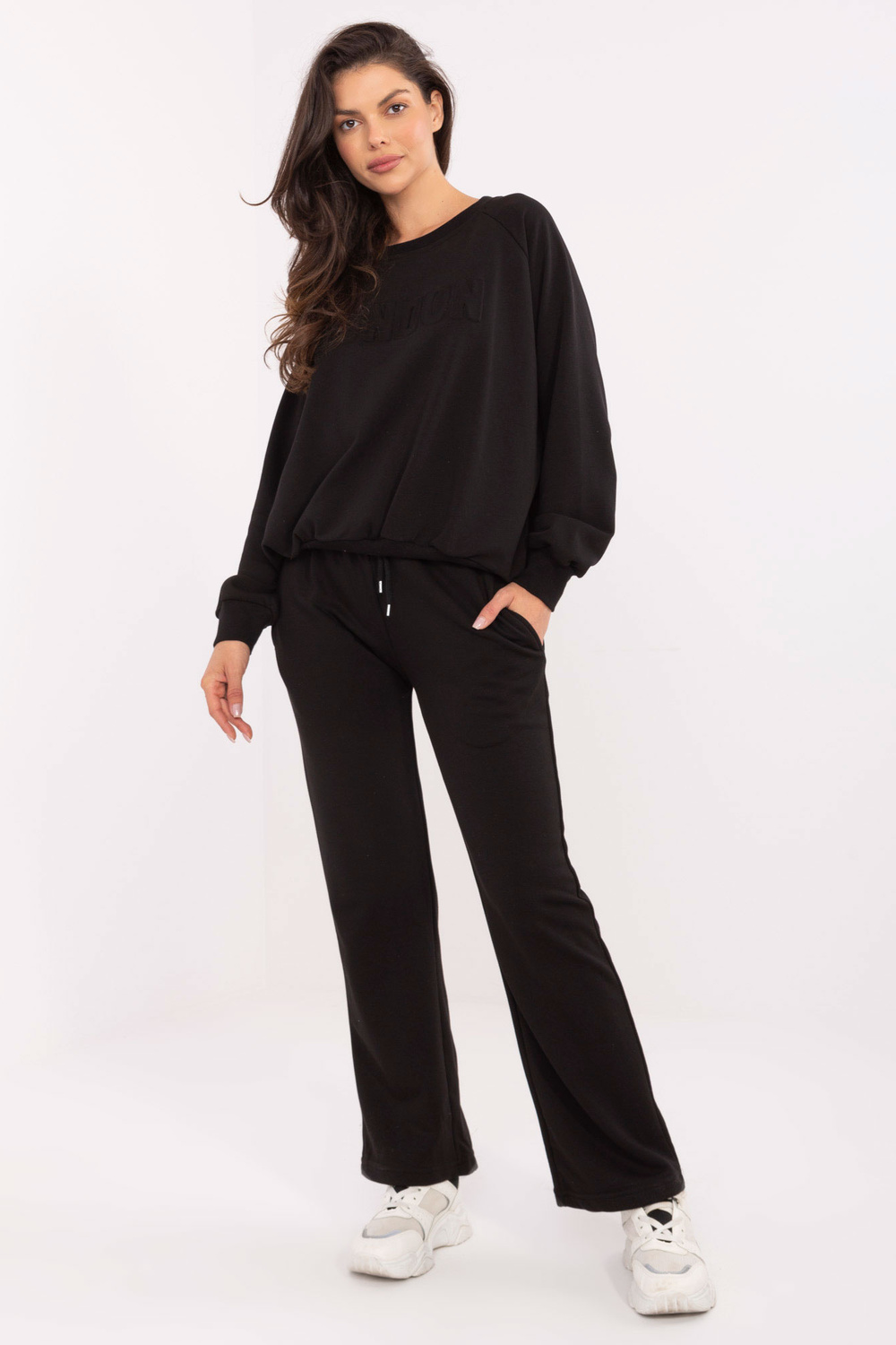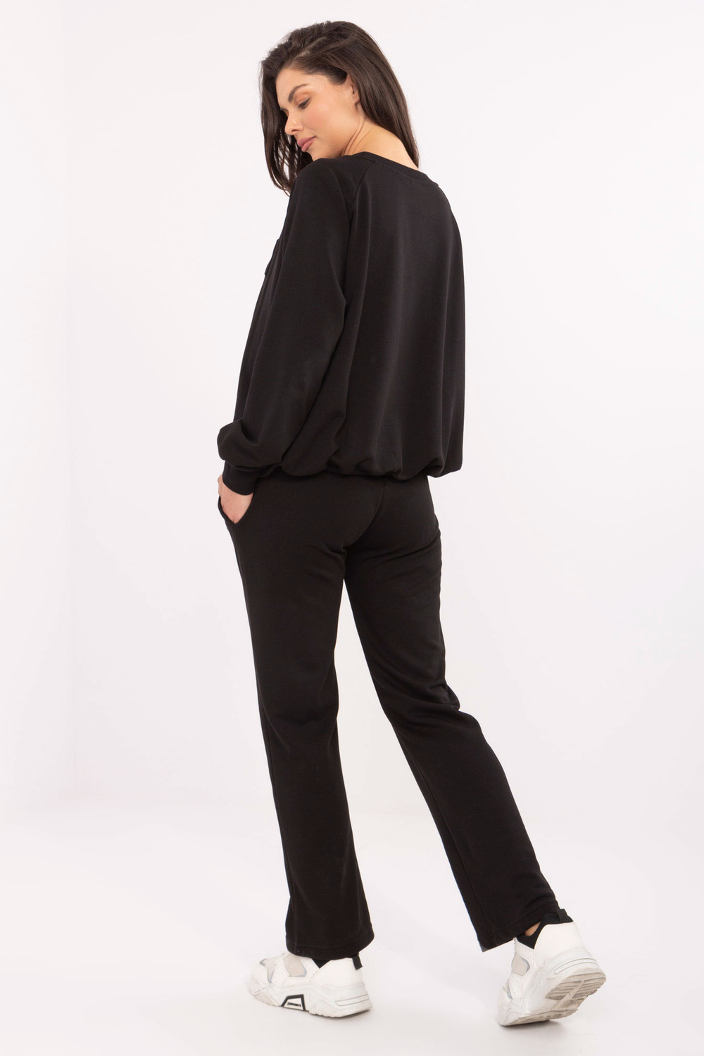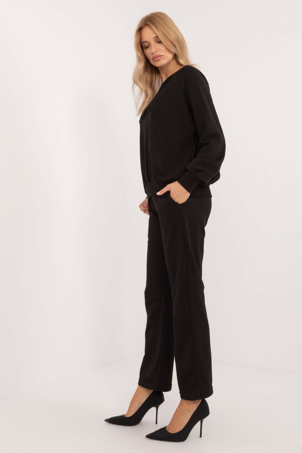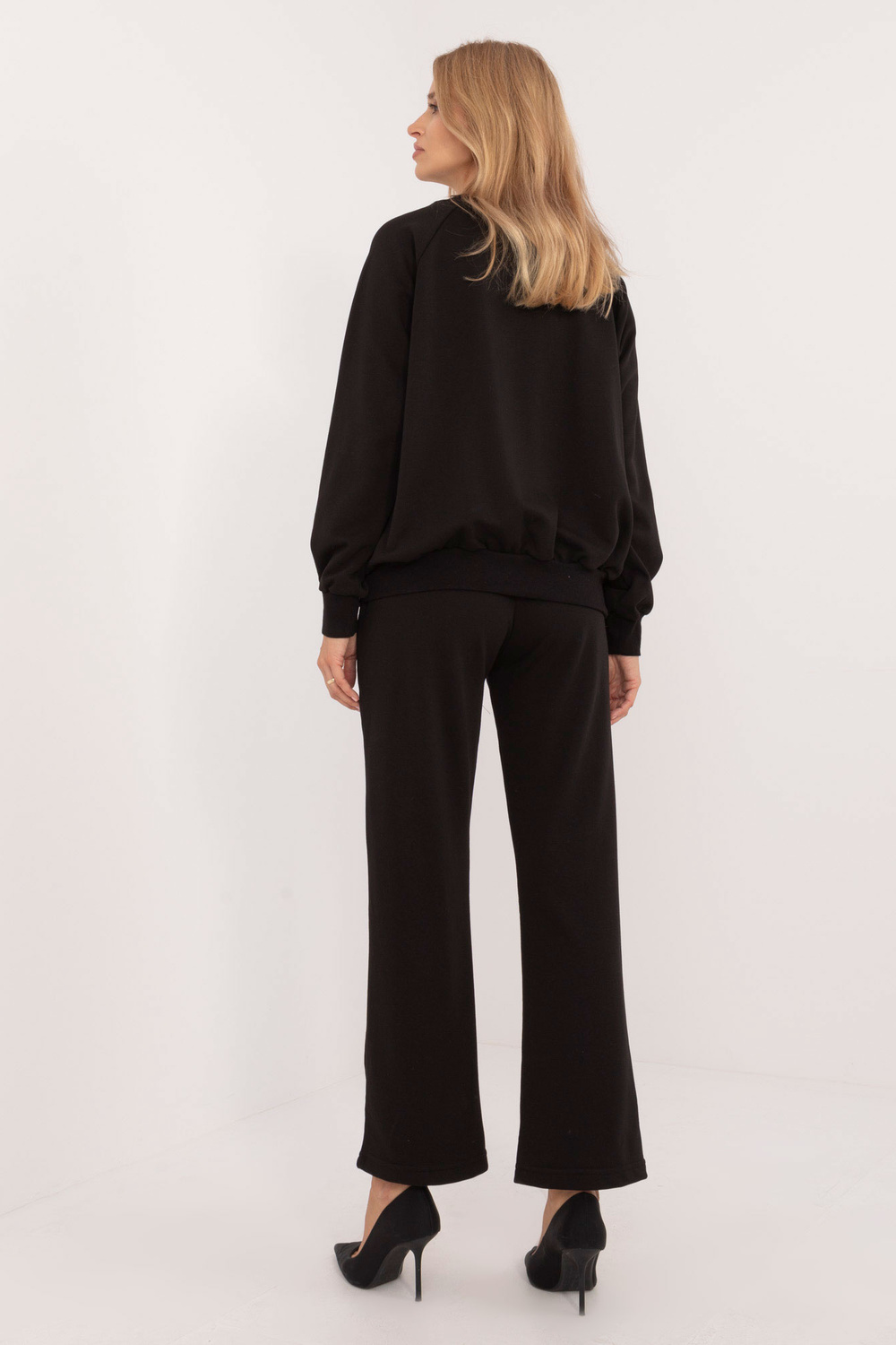 Komplekti mõõdud ühes suuruses, mõõdetuna tasaseks: dressipluusi laius kaenla alt - 68 cm, dressipluusi pikkus - 67 cm, varruka pikkus - 64 cm, pükste vöö laius - 33 cm, vöö kõrgus - 34 cm , pükste pikkus - 105 cm.