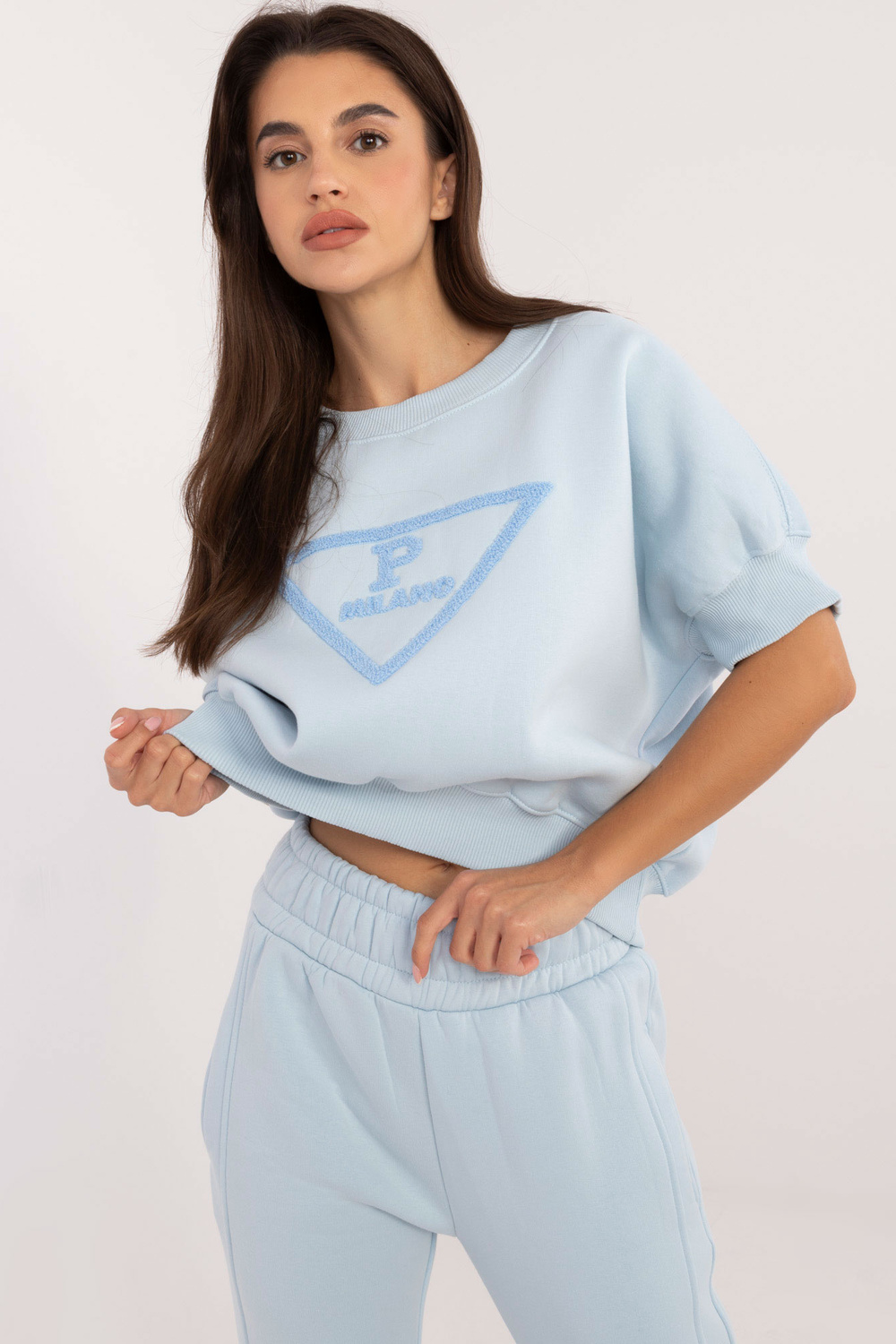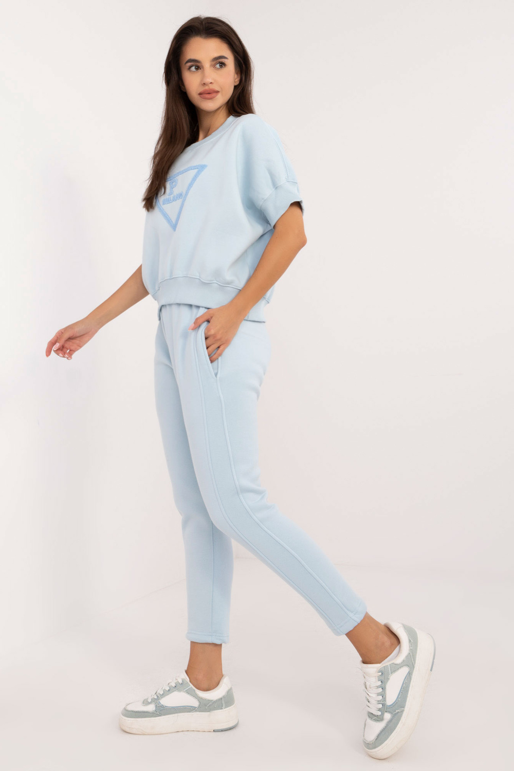 Ühesuuruse komplekti mõõdud tasapinnaliselt mõõdetuna: dressipluusi laius kaenla alt - 72 cm, dressipluusi pikkus - 56 cm, pükste laius vööst - 38 cm, vöö kõrgus - 34 cm, pikkus püksid - 97 cm.