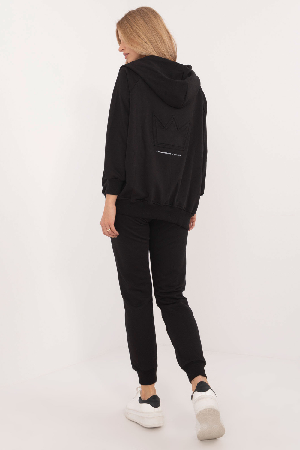 Komplekti mõõdud suuruses one, mõõdetuna tasapinnaliselt: dressipluusi laius all käed - 69 cm, varruka pikkus - 60 cm, dressipluusi pikkus - 67 cm, ülaosa laius kaenla alt - 38 cm, ülaosa pikkus - 45 cm, pükste vöö laius - 31 cm, vöö kõrgus - 32 cm (lame), pükste vöö laius - 44 cm (peale venitamist), pükste pikkus - 104 cm.