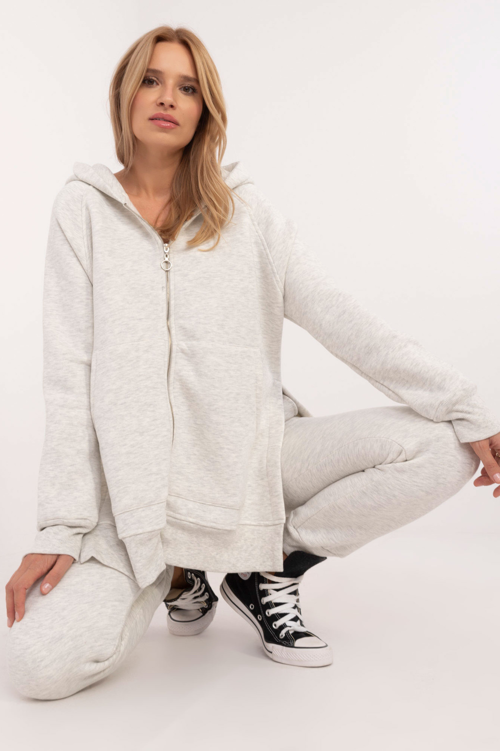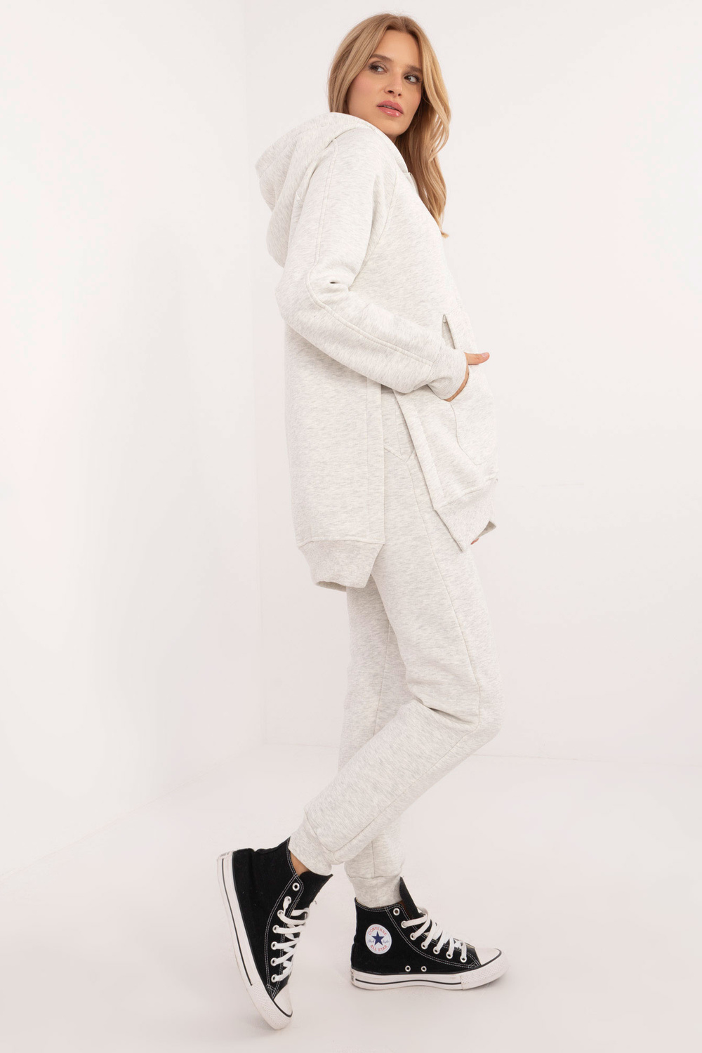 Komplekti mõõdud suuruses one, mõõdetuna lamedalt: laius kaenla alt - 62 cm, dressipluusi pikkus - 77 cm, varruka pikkus - 63 cm, pükste laius vööst - 32 cm (lame), pükste laius vööst - 44 cm (pärast venitamist), pükste pikkus - 99 cm.