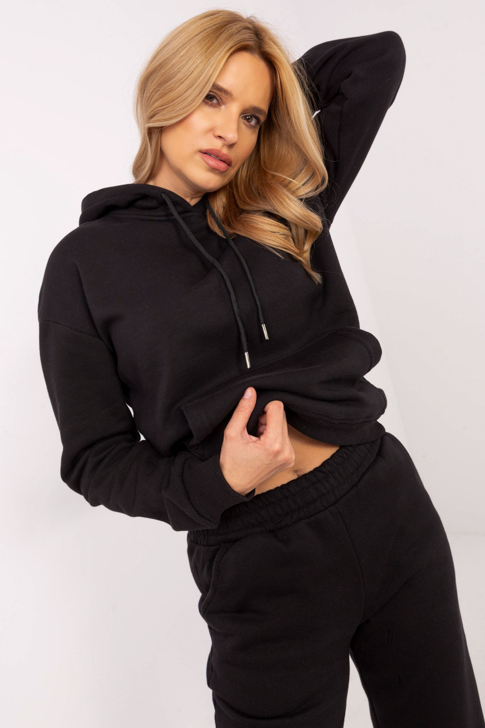 Komplekti mõõdud Suurus S: dressipluusi laius kaenla alt - 61 cm, varruka pikkus - 56 cm (õmblusest), üldpikkus - 68 cm, pükste laius vööst - 32 cm, pükste laius puusadest - 46 cm, pükste pikkus - 100 cm.