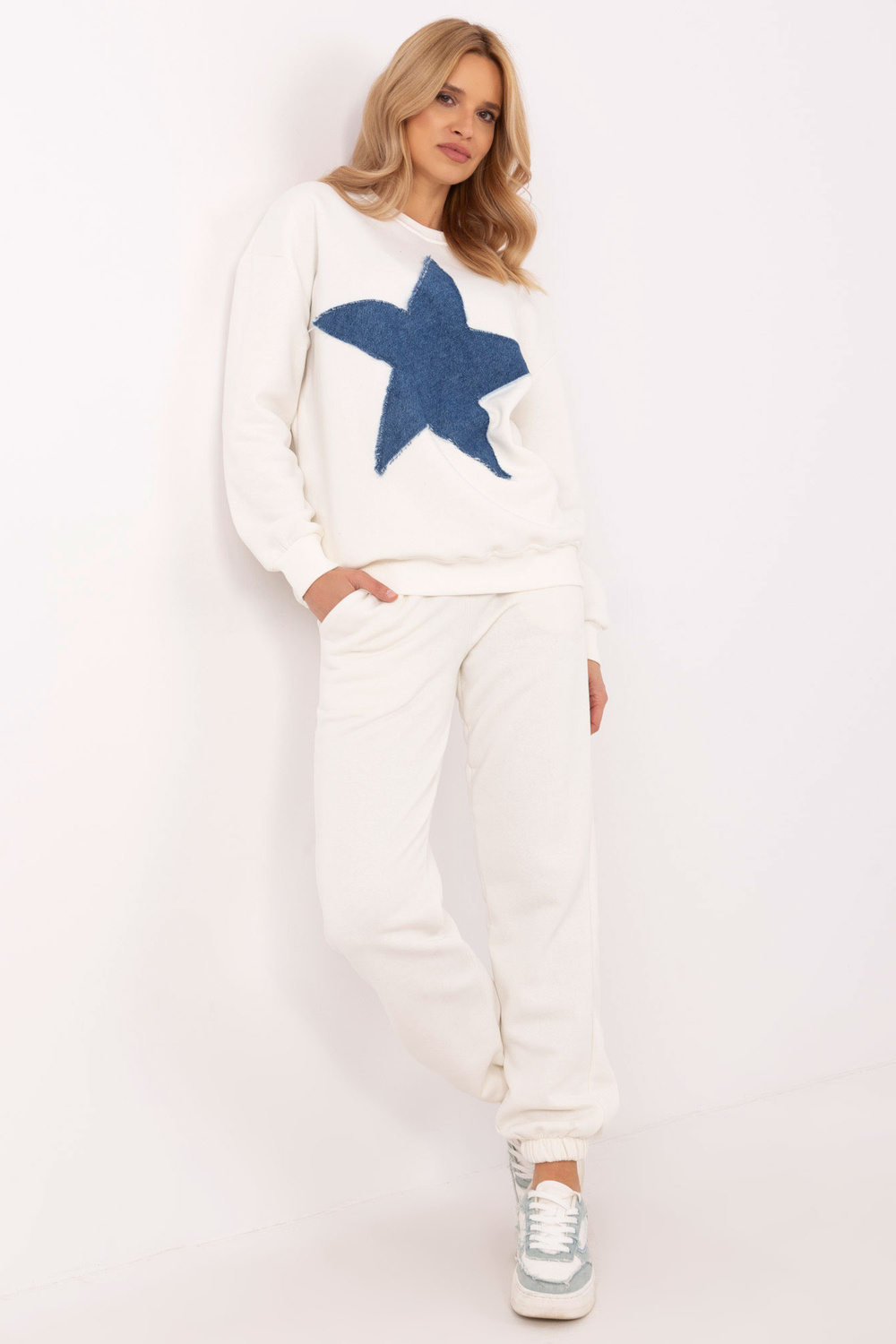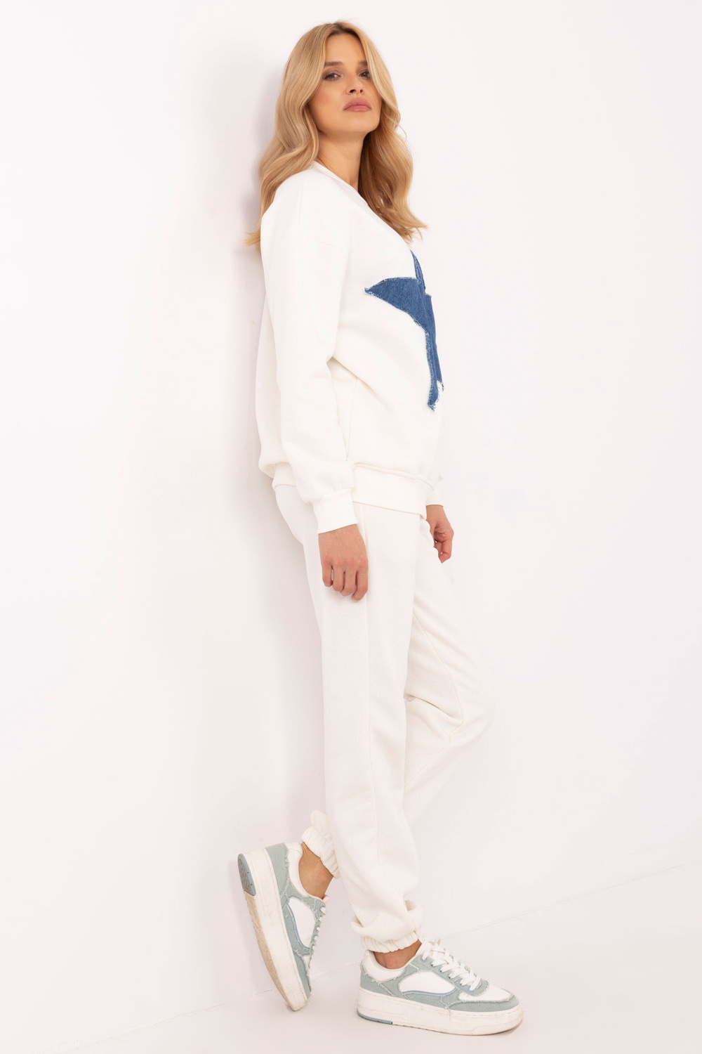 Komplekti mõõdud Suurus S: dressipluusi laius kaenla alt - 60 cm, varruka pikkus - 53 cm (õmblusest), üldpikkus - 71 cm, pükste laius vööst - 33 cm, pükste laius puusadest - 46 cm, pükste pikkus - 104 cm.