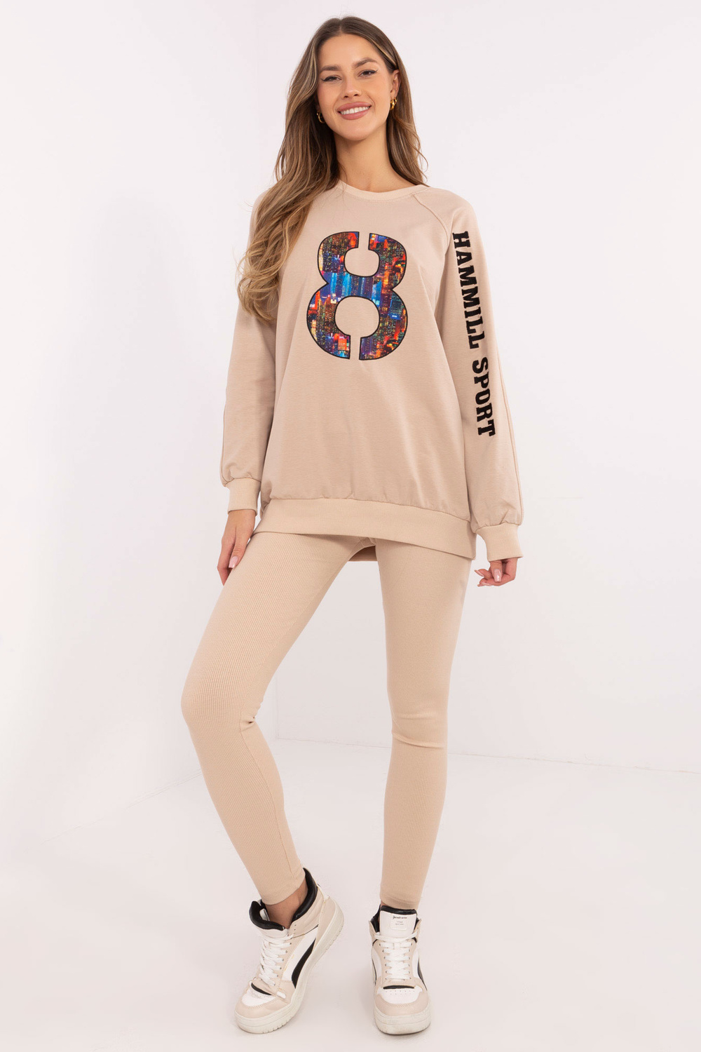 Dregipluusi mõõdud suuruses one, mõõdetuna tasapinnaliselt: dressipluusi laius all käed - 62 cm, dressipluusi pikkus - 74 cm, varruka pikkus - 43 cm (kaenla alt), puusaümbermõõt - 110 cm.