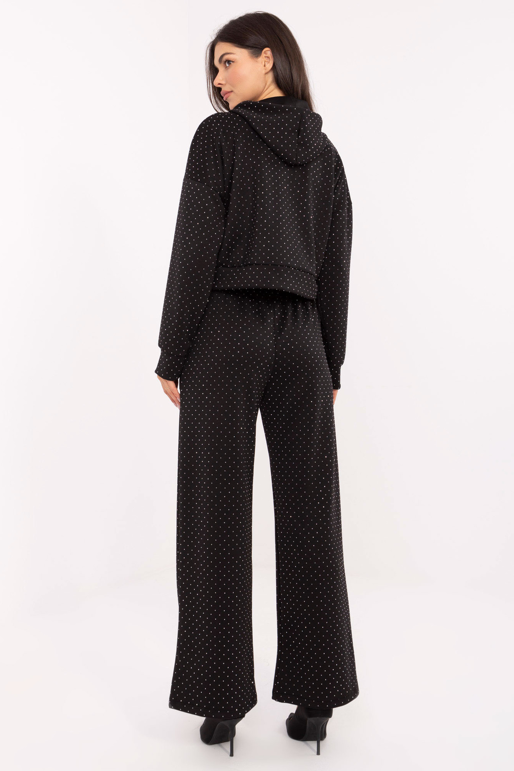 Komplekti mõõtmed ühe suurusega riidel: laius kaenla alt - 60 cm, bluusipikkus - 46 cm, varruka pikkus - 49 cm (õmblusest), laius puusa piirkonnas - 53 cm, pükste laius talje piirkonnas - 34 cm (sirgelt), pükste laius talje piirkonnas - 76 cm (venitatud), laius puusa piirkonnas - 52 cm, pükste pikkus - 100 cm.