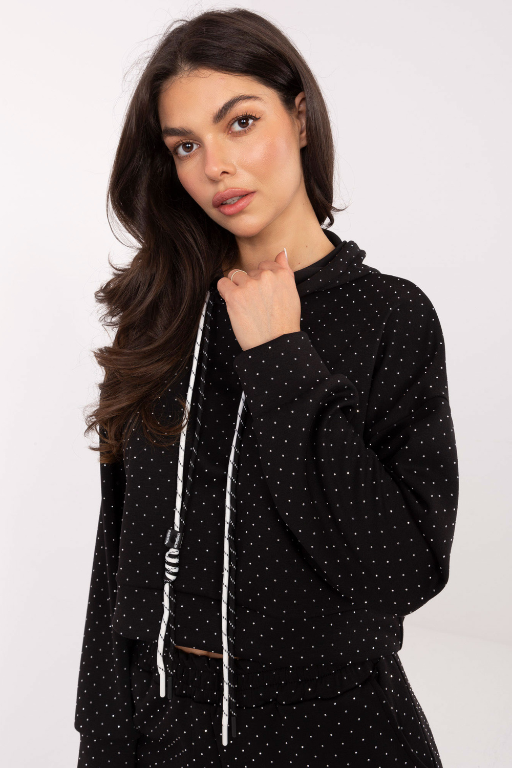 Model kannab üht suurust riiet. Modeli mõõtmed: pikkus 173 cm, rind 85 cm, talje 62 cm, puusad 95 cm.