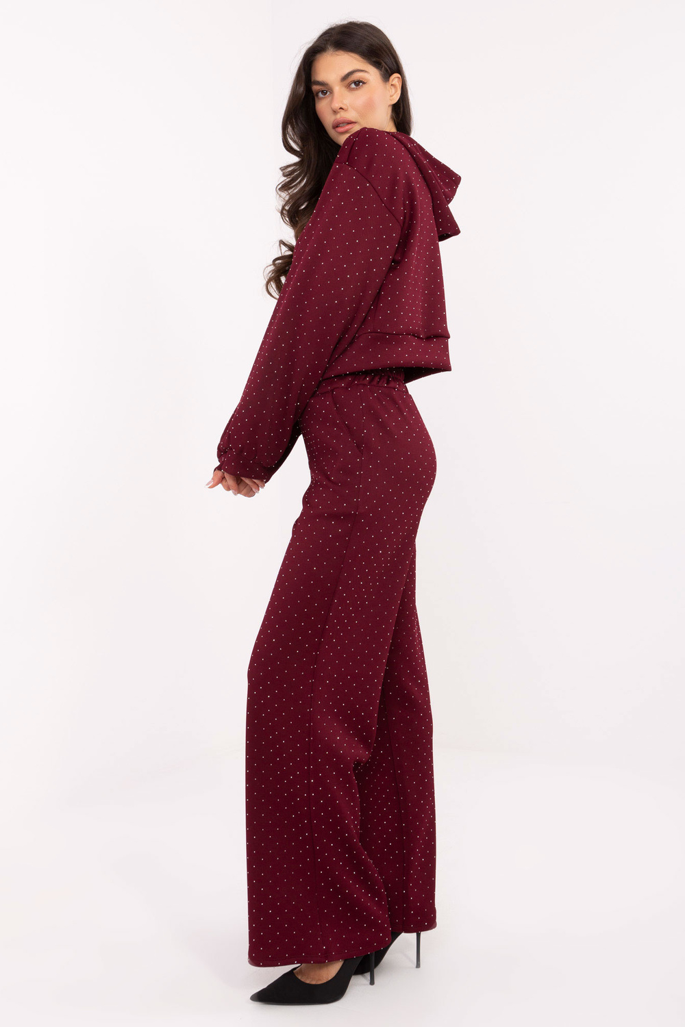 Komplekti mõõdud universaalses (one size) suuruses: kaenlaalune laius – 56 cm, pluusi pikkus – 48 cm, varruka pikkus – 58 cm (õmblusest), puusa laius – 52 cm, pükste vöö laius sirgelt – 33 cm, venitatult – 62 cm, puusa laius – 51 cm, pükste pikkus – 106 cm.