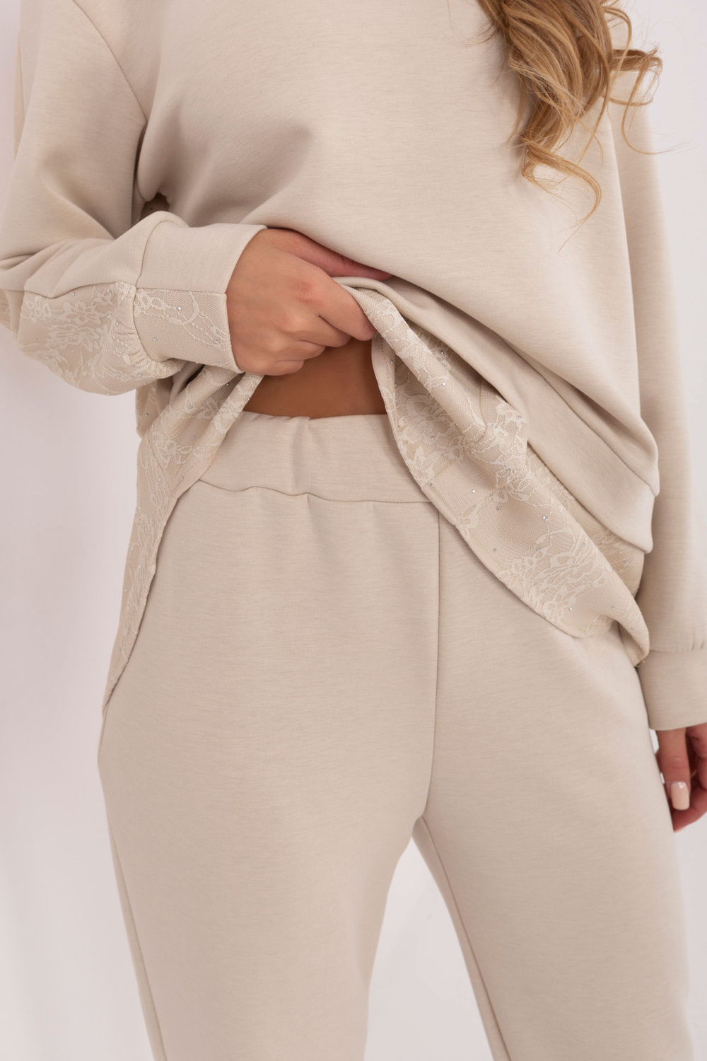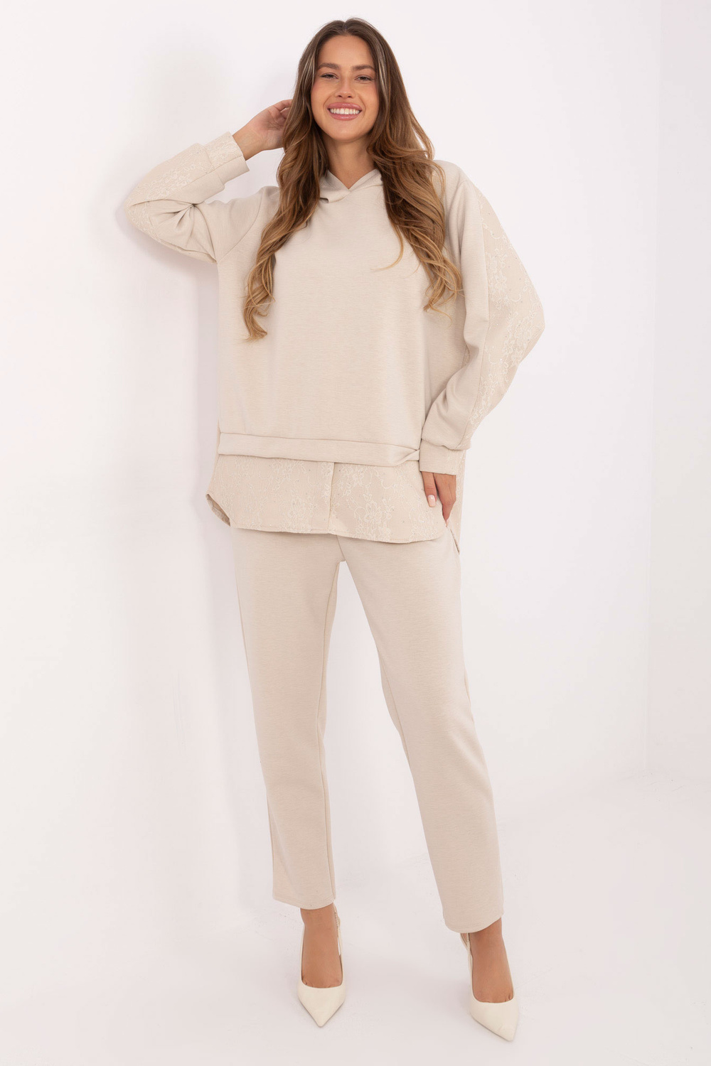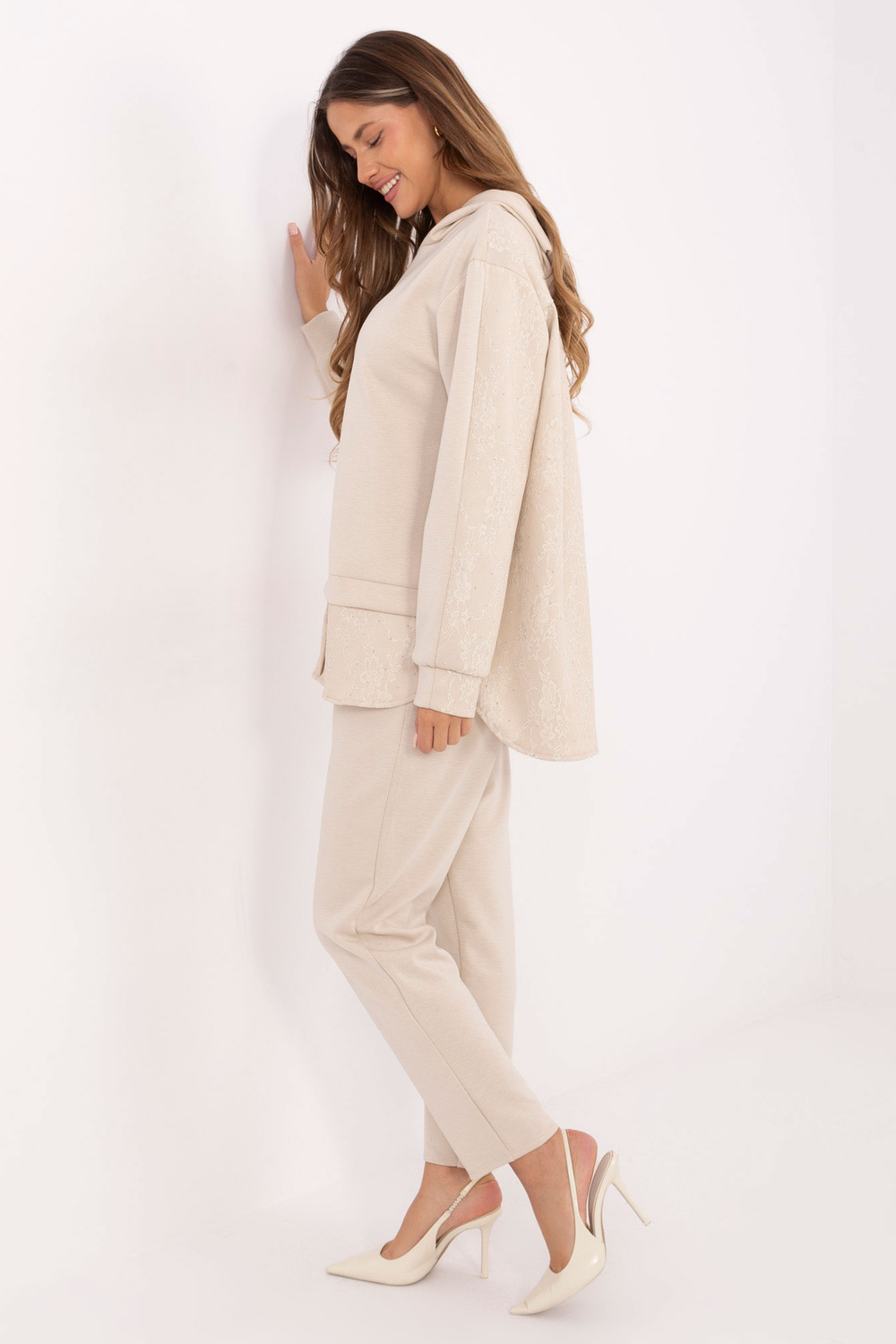 Ühe suurusega komplekti mõõdud: laius kaenla alt - 61 cm, džempri pikkus - 71 cm (ees), džempri pikkus - 79 cm (taga), varruka pikkus - 59 cm (õmblusest), puusade laius - 64 cm, pükste talje laius - 34 cm (venitades), pükste talje laius - 68 cm (venitatud), puusade laius - 54 cm, pükste pikkus - 98 cm.