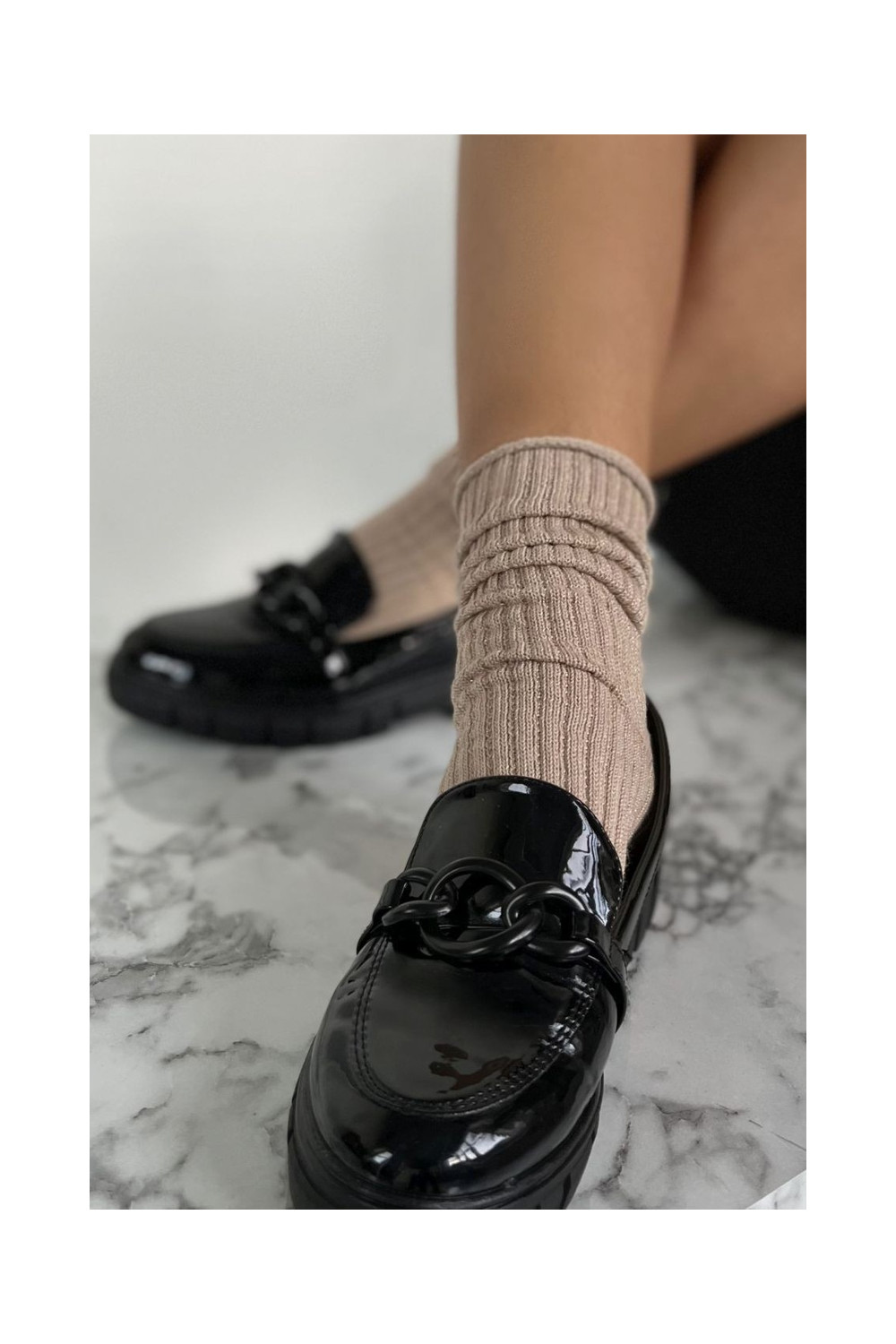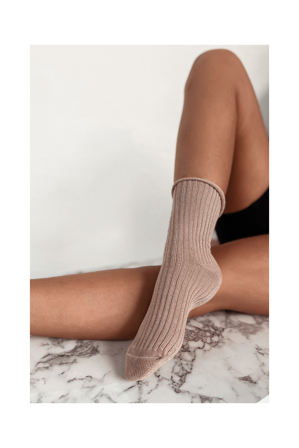 Smiltsede värvi moterišed survet mittetegavad sokid, triibulised Lurex lõngaga