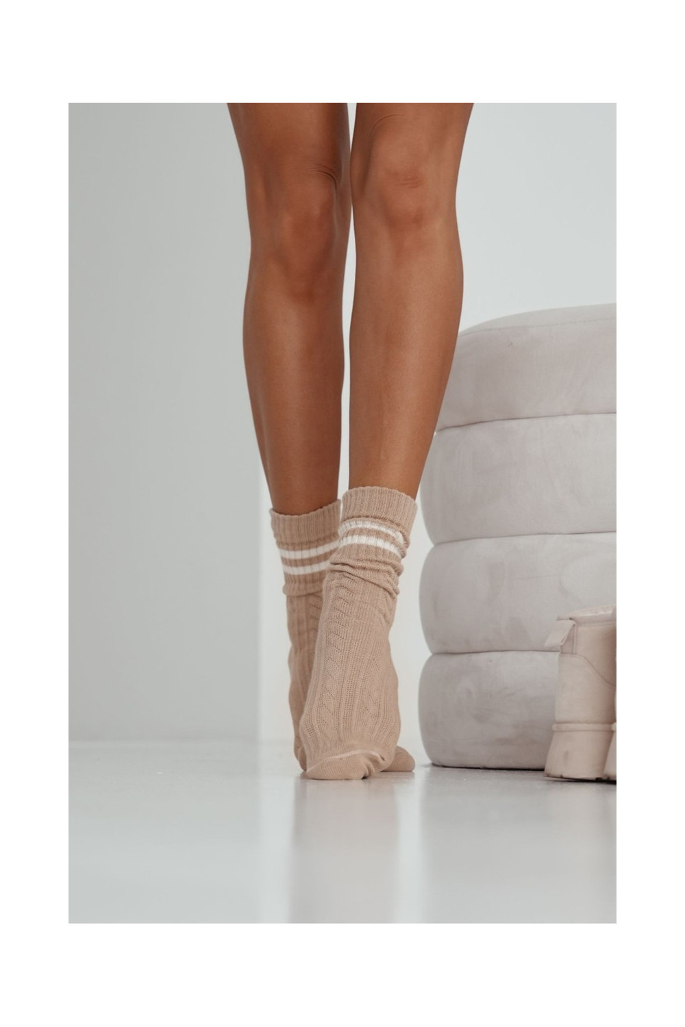 Smiltsede värvi moterišed sokid palmikutega ja ribadega