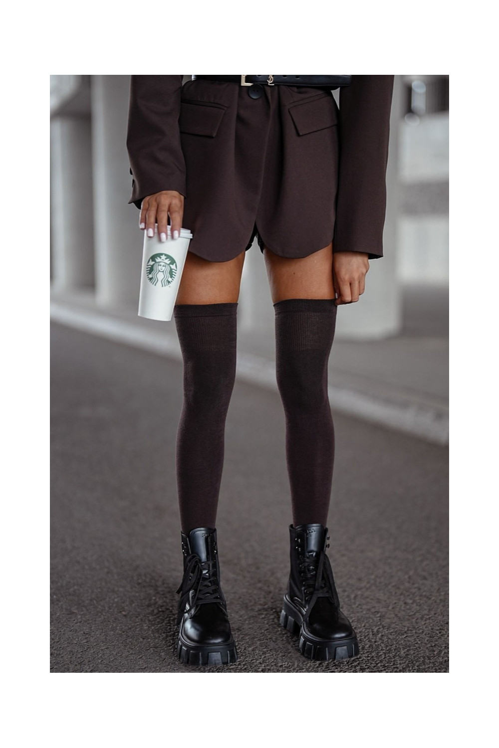 Naiste pikad sokid Puuvillased siledad šokolaadi värviga