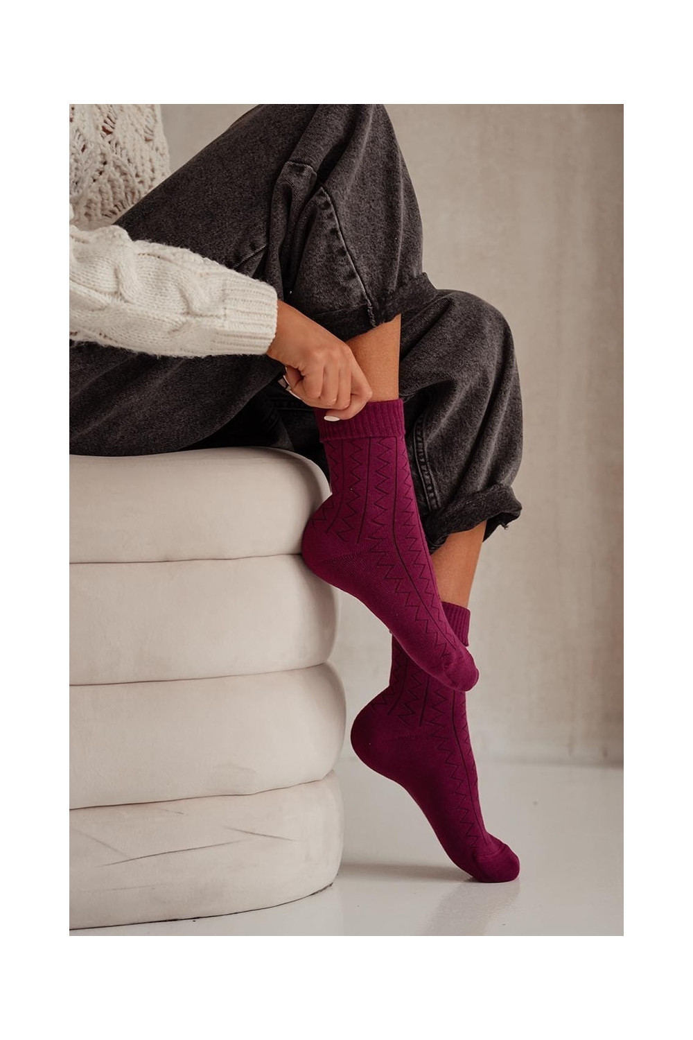 Sokid Frotte Zygzak bordoo-värvi