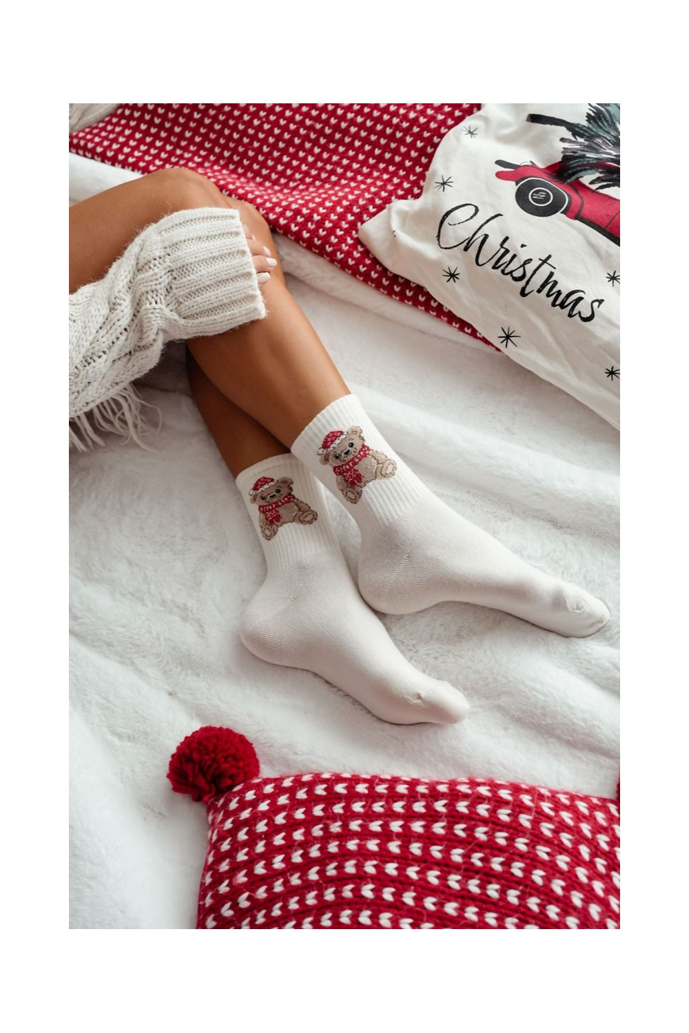 Sokid Pealiste omad Christmas Karu Korgis Santa Clausa Ecru