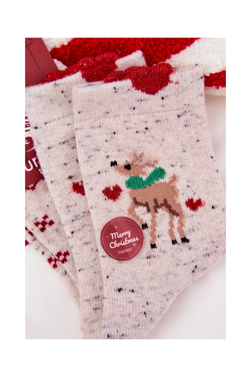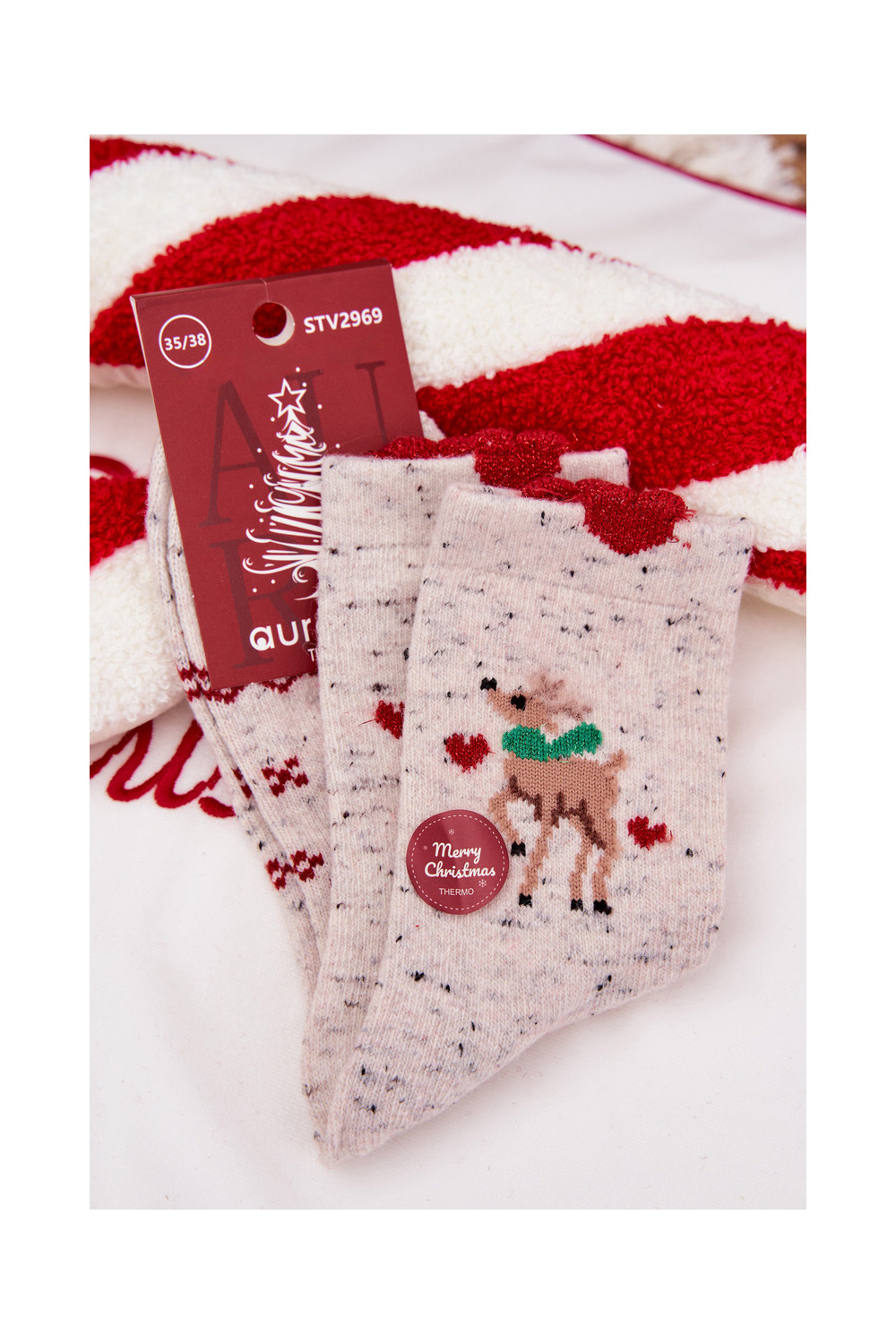 Women's Christmas Socks With Reindeer And Hearts Wool Alpaca Grey