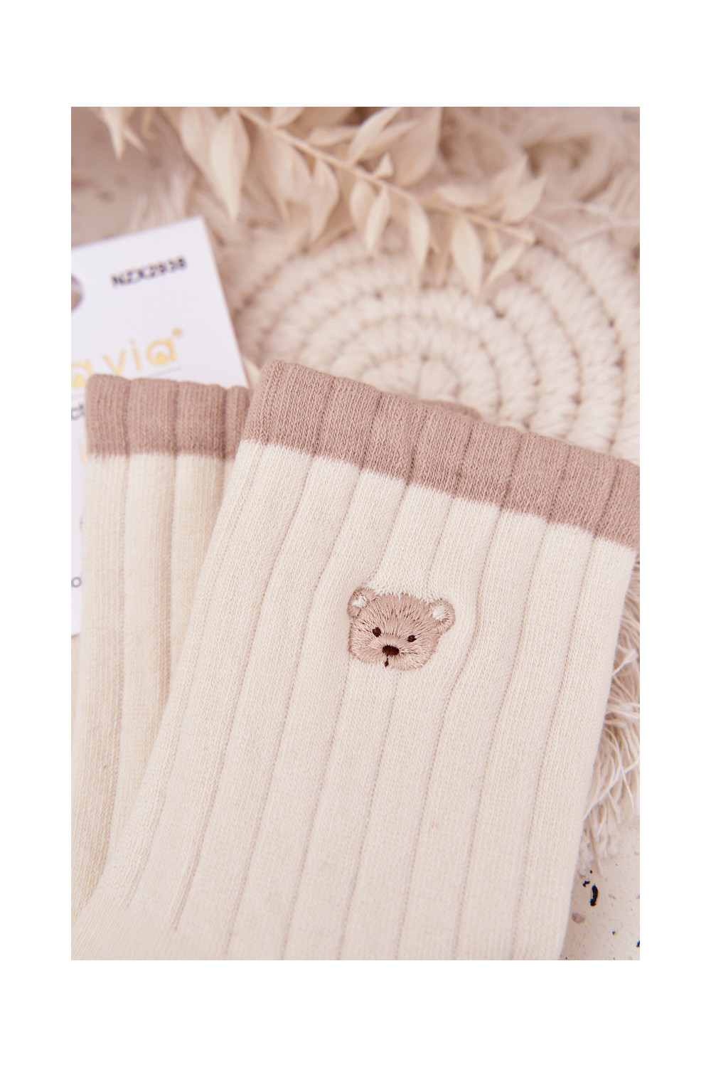 Women's Cotton Socks With Small Bear Ecru
