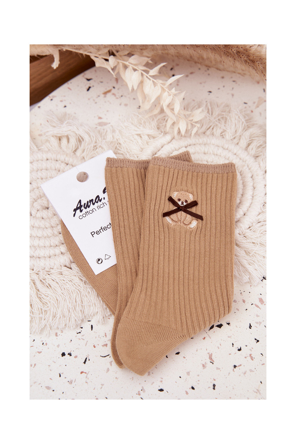 Puuvillased sokid triipudega Koos Karuga pruunid värvi