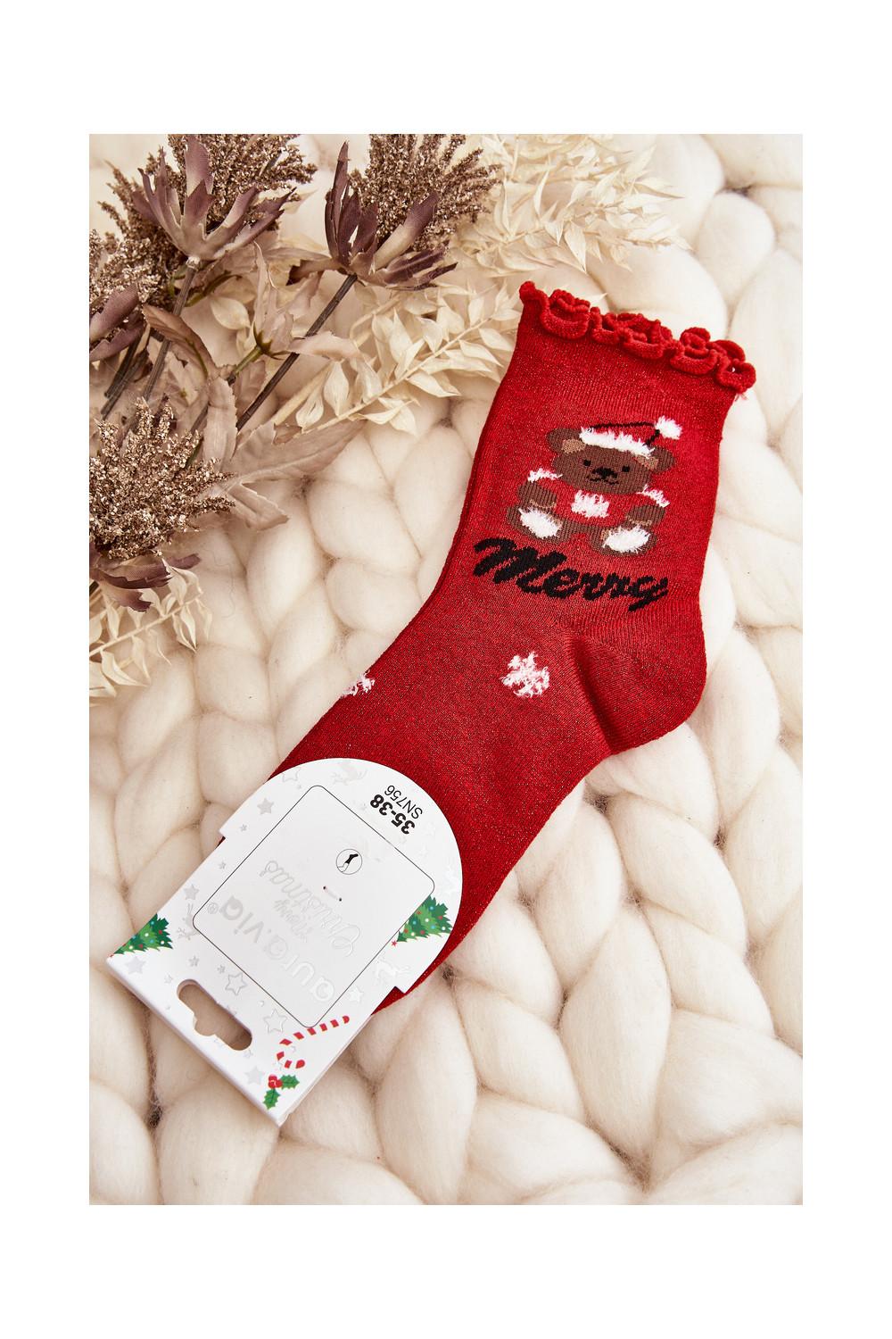 Pealiste omad läikiv Christmas Skarpety Koos Karuga runased