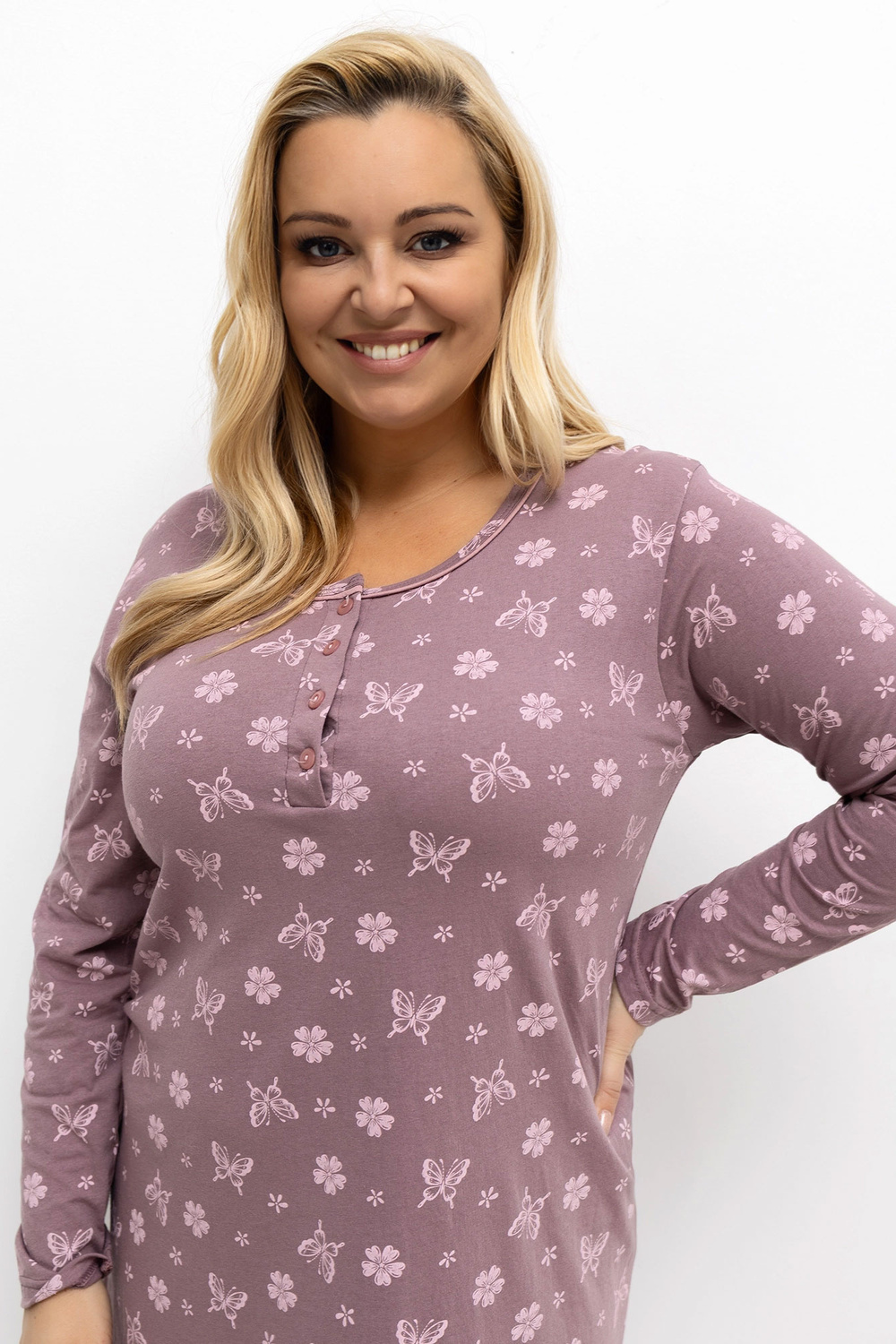 Model kannab XL suurust. Motiivi mõõdud: pikkus 167 cm, rind 118 cm, vöökoht 90 cm, puusad 118 cm.