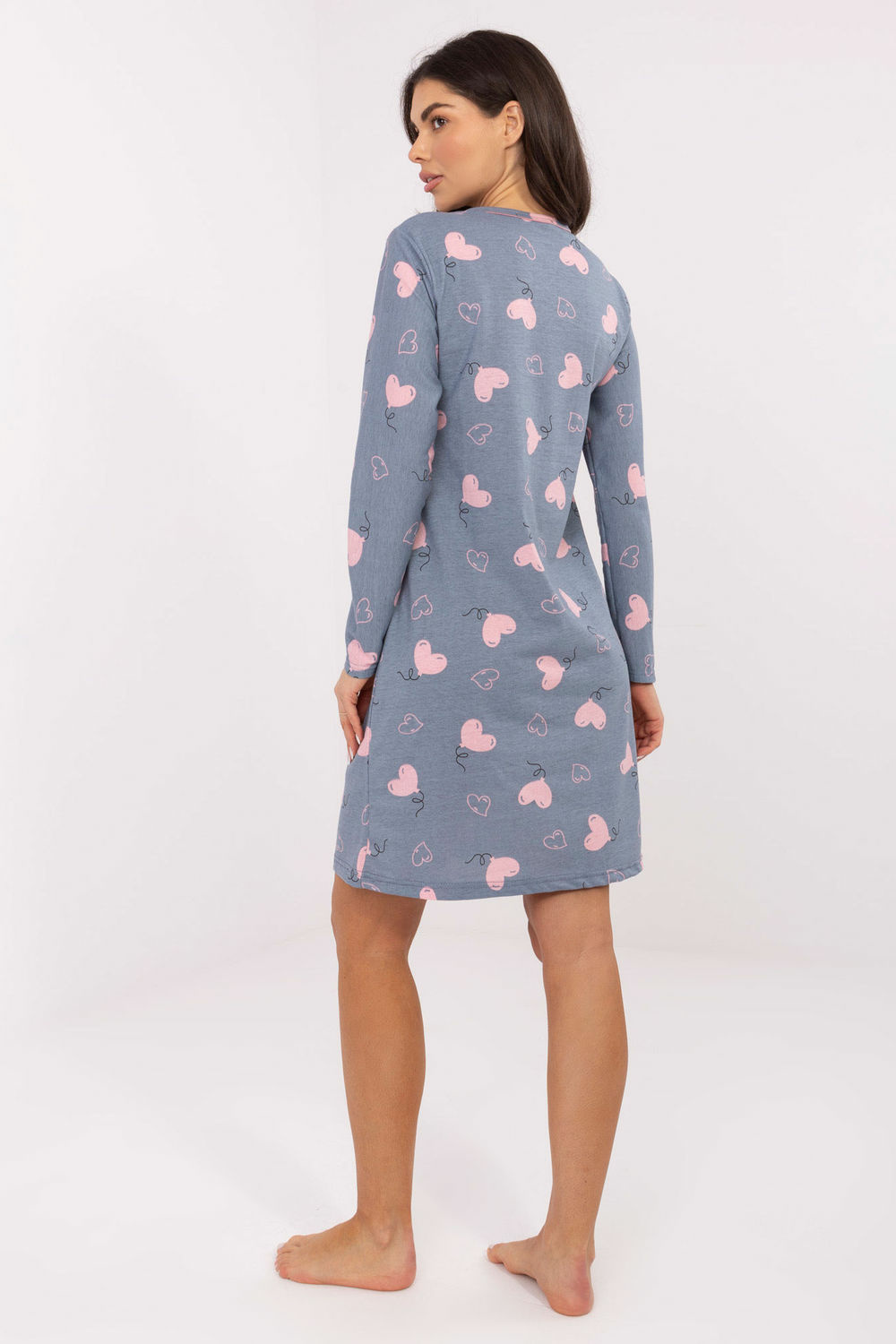 Women's shirt made of dominant cotton, which ensures high wearing comfort and breathability throughout the day. The is decorated with a charming heart print, giving it a delicate, feminine character. The shirt has a V-neckline, which subtly emphasizes the neckline, and long sleeves, perfect for cooler days. Four buttons are placed on the front, adding a classic finish and making it easy to put on. This is a stylish and comfortable everyday option.