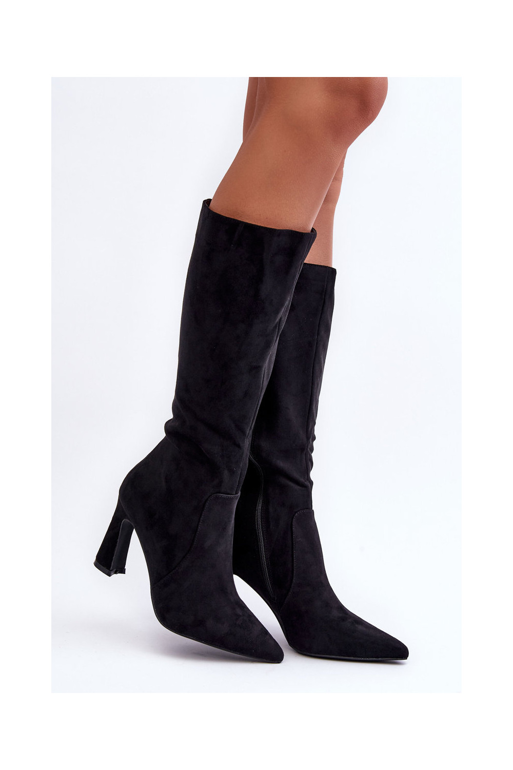 seemisnakhsed pika säärega saapad kõrge jämeda kontsaga mustad Adrolio