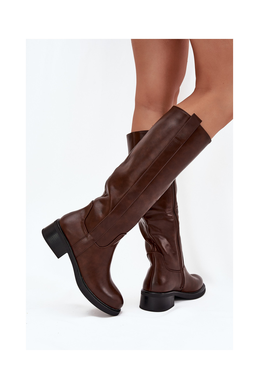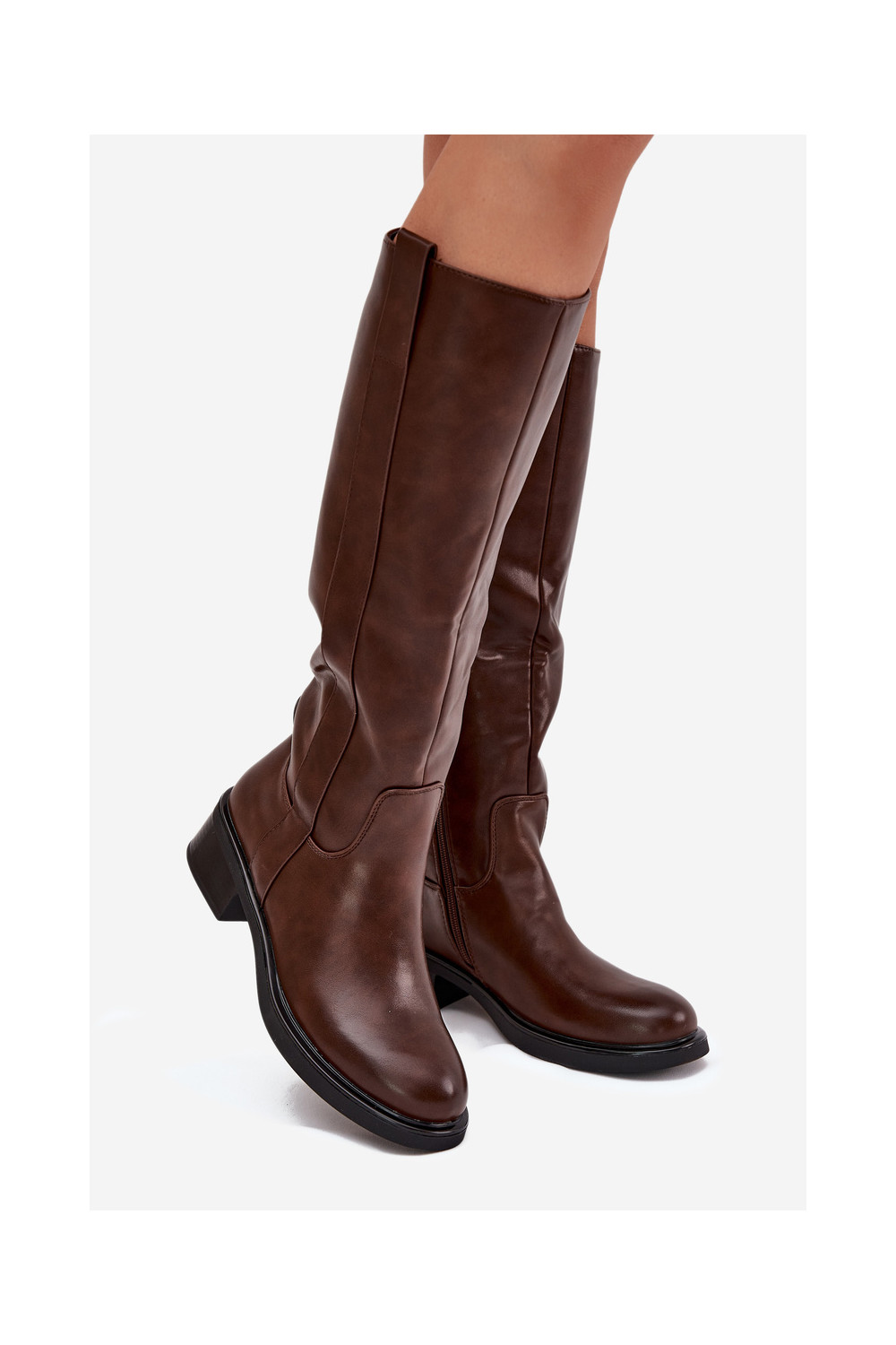 Naiste pikad saapad madala kontsaga, soojustatud, pruunis Averna