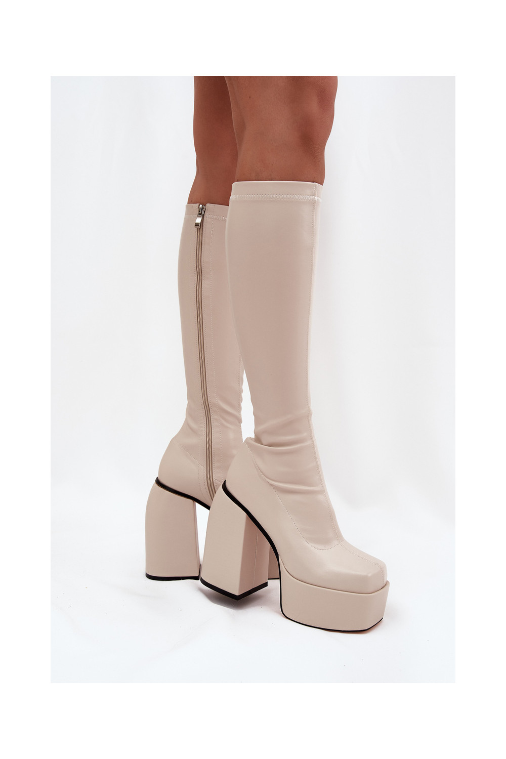 Naiste pikad saapad kontsade ja platvormiga elevandiluust Yavira
