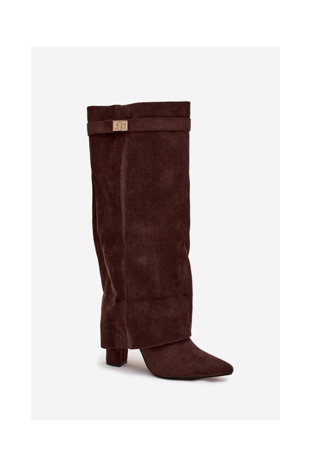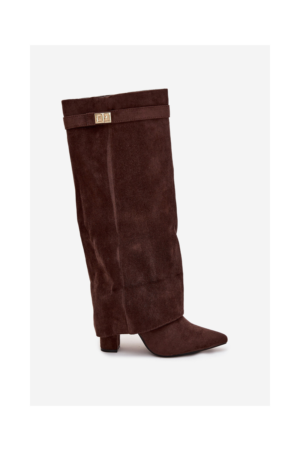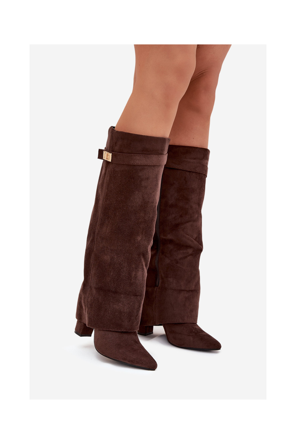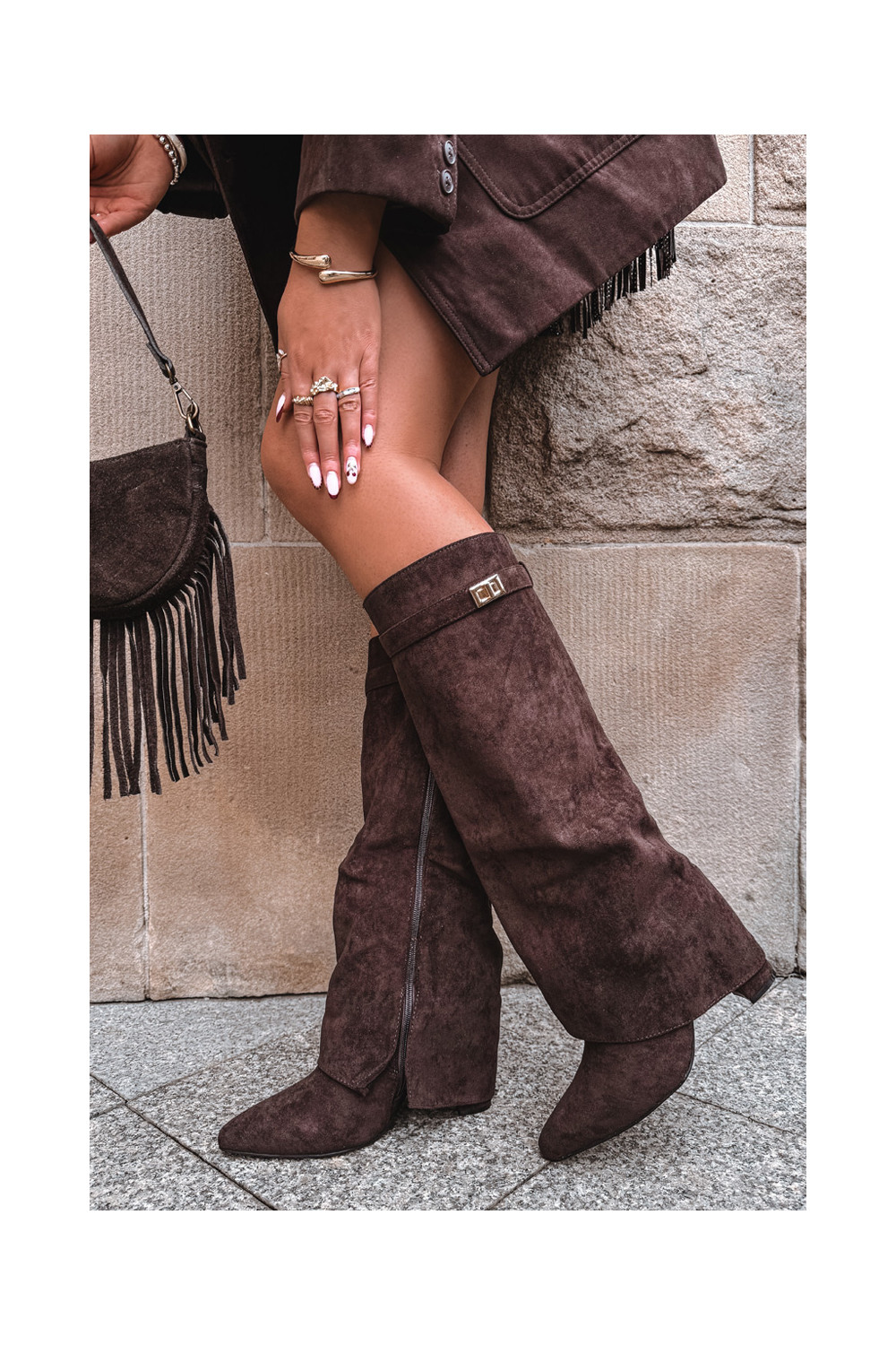 Eco Suede Boots Heel Block Zipper Insulated Folded Shaft Chocolate Evyra