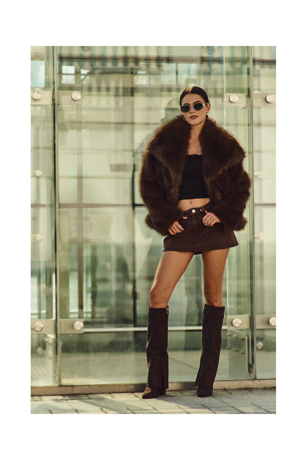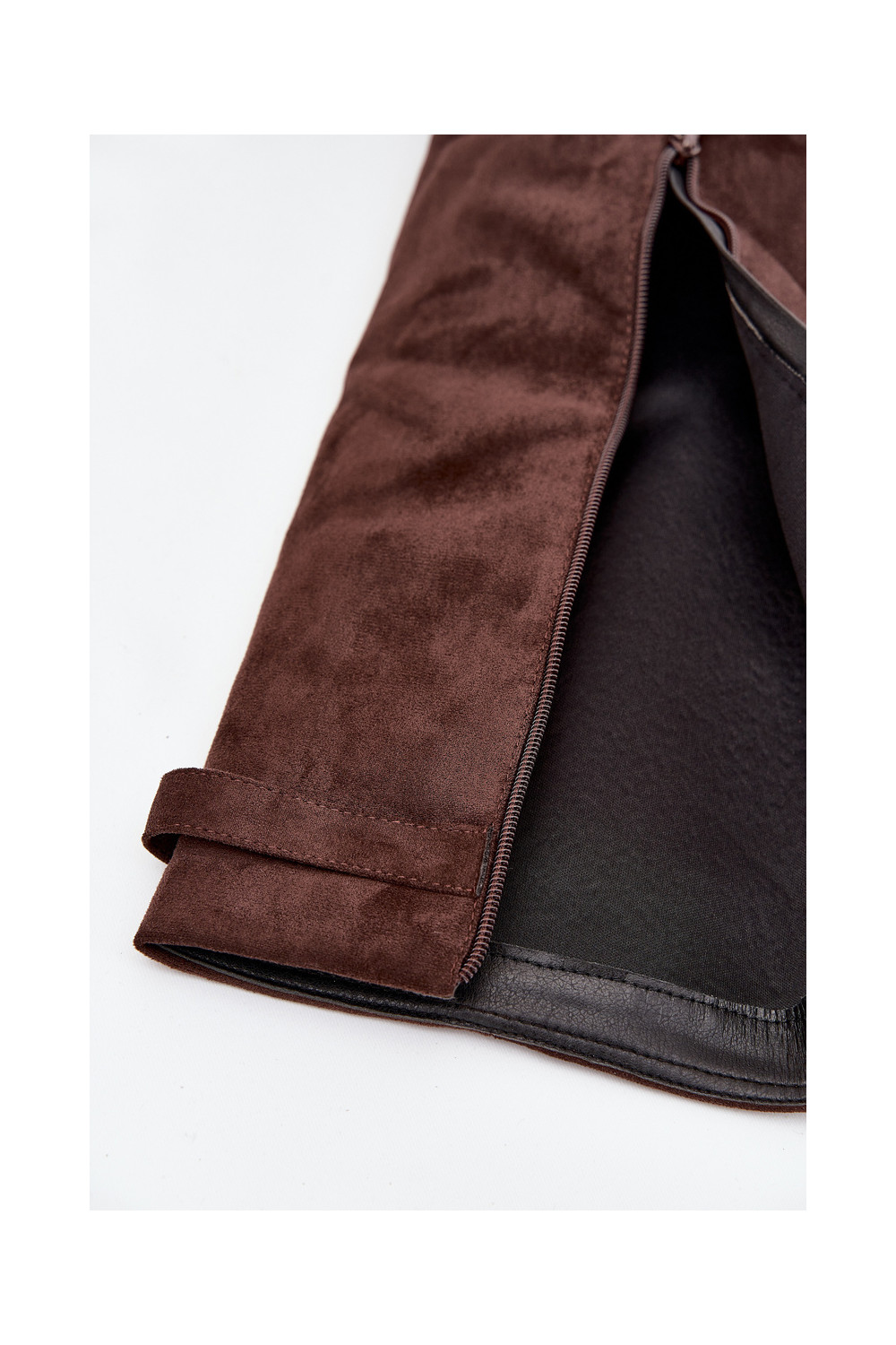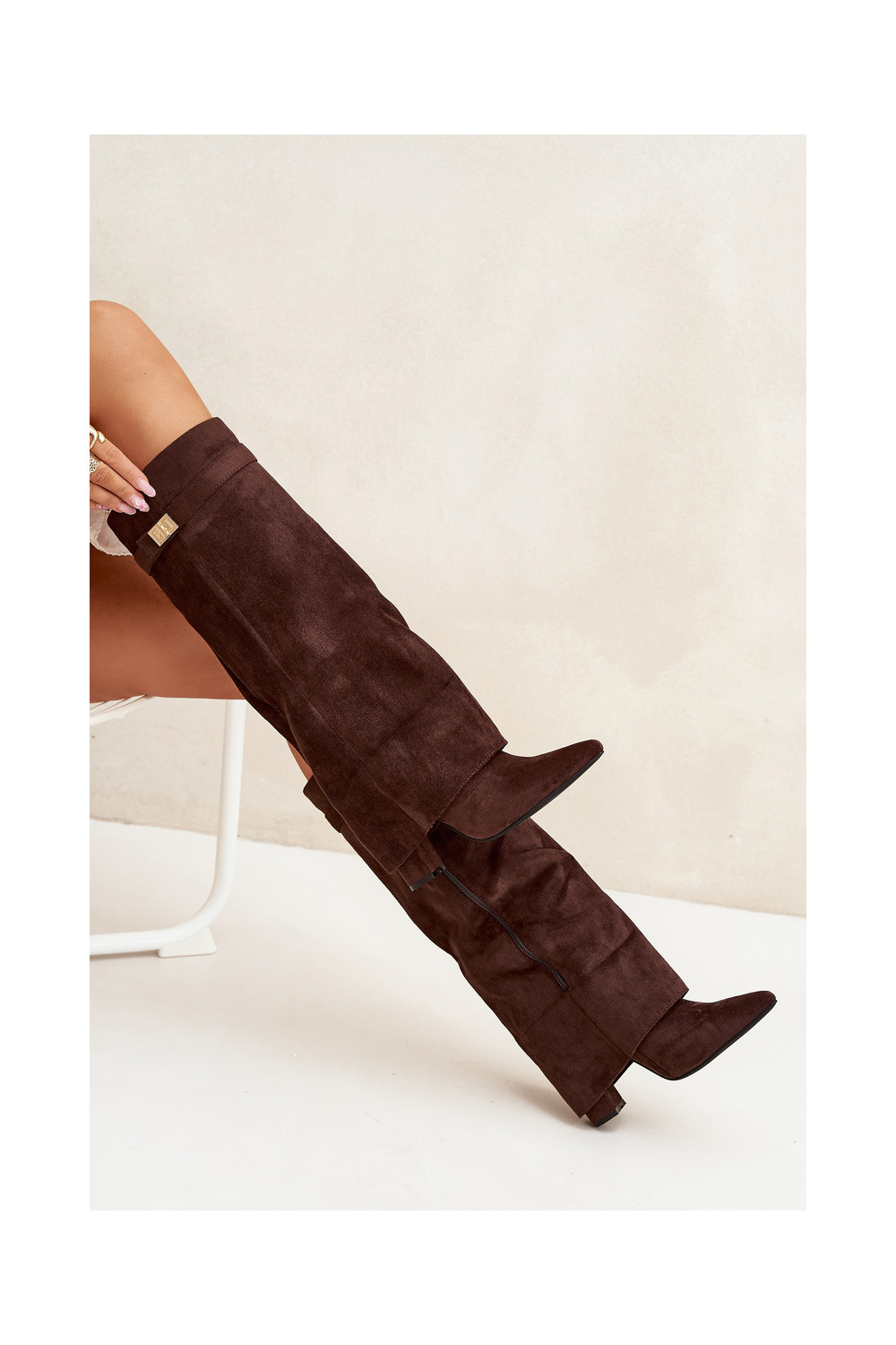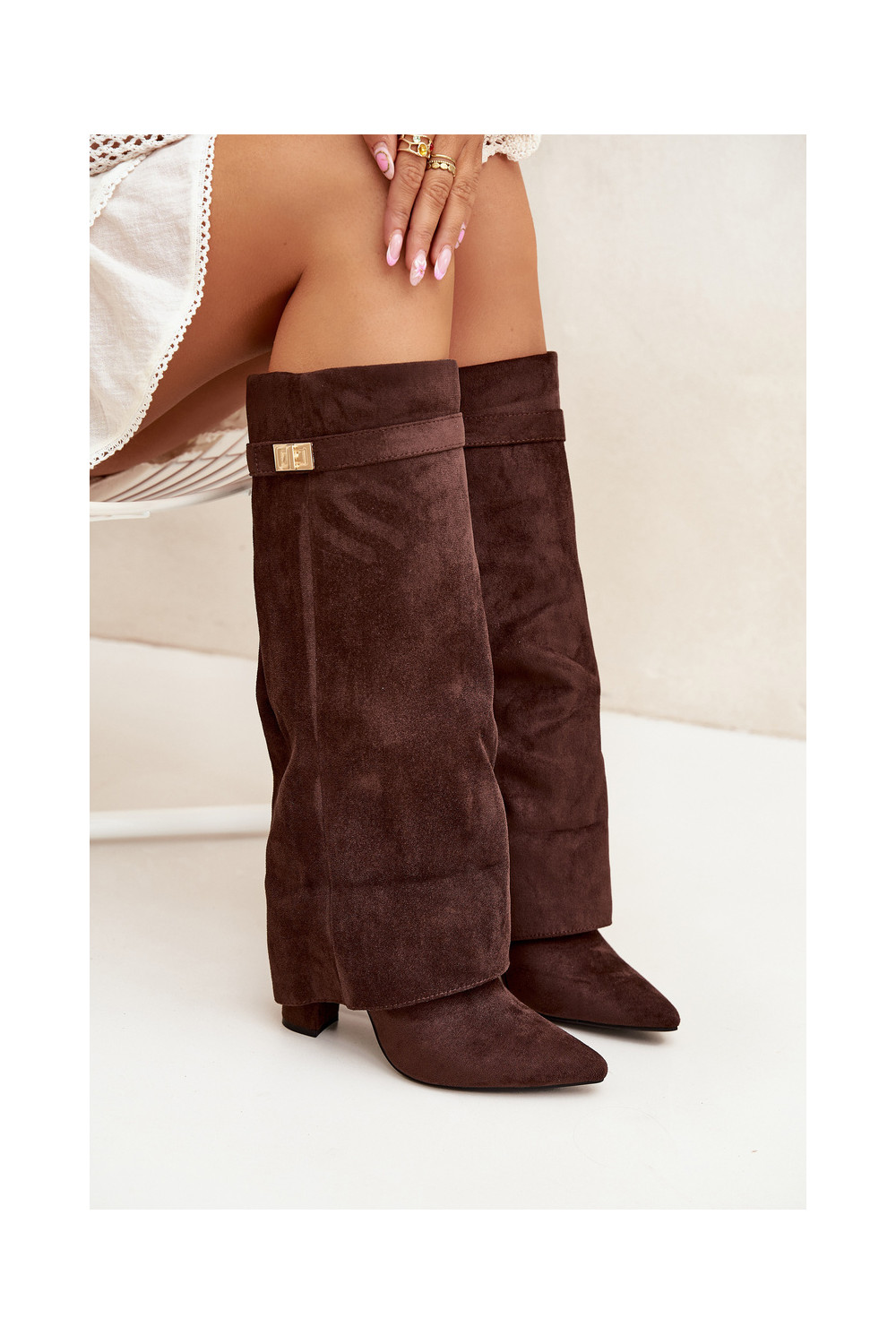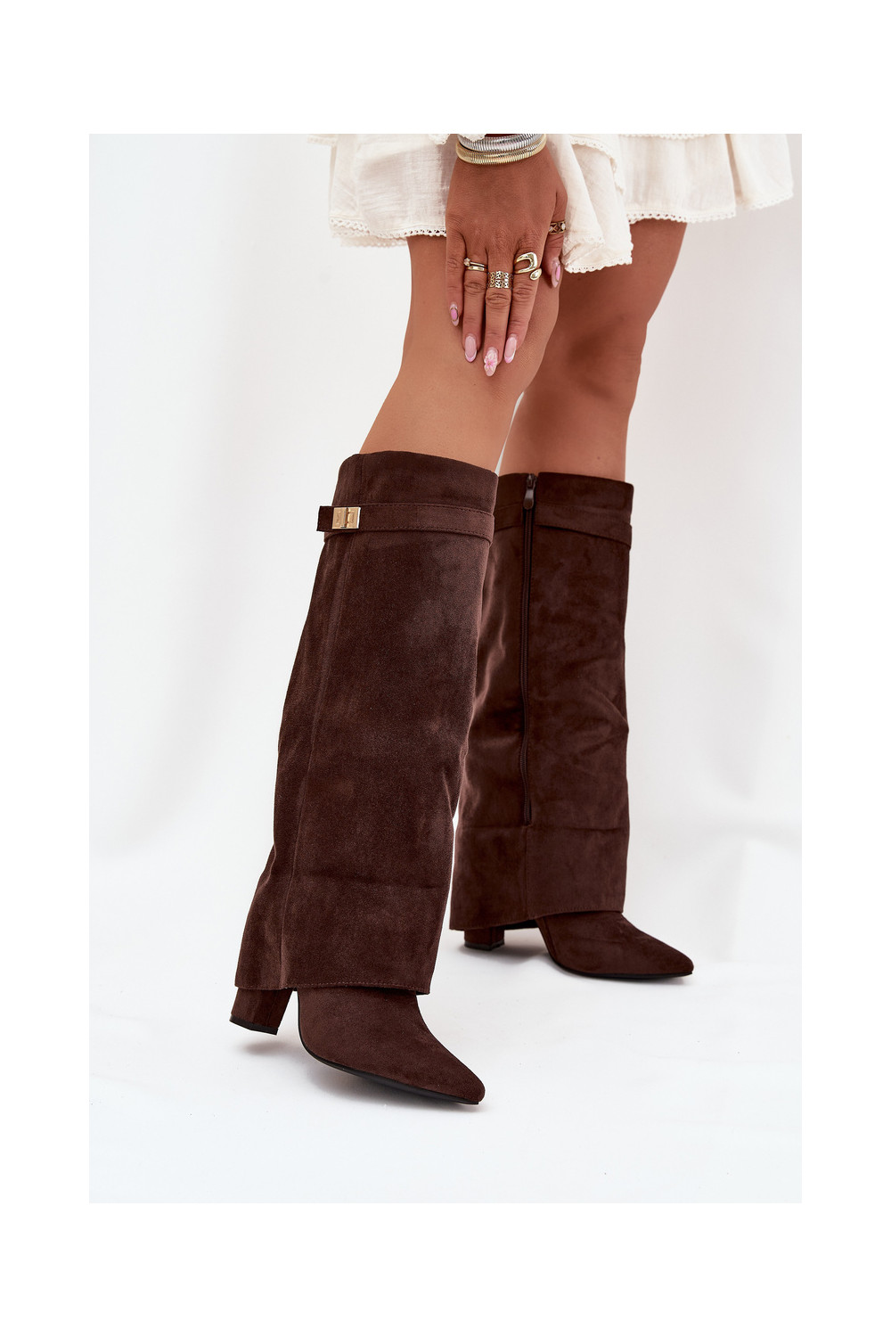 Eco Suede Boots Heel Block Zipper Insulated Folded Shaft Chocolate Evyra