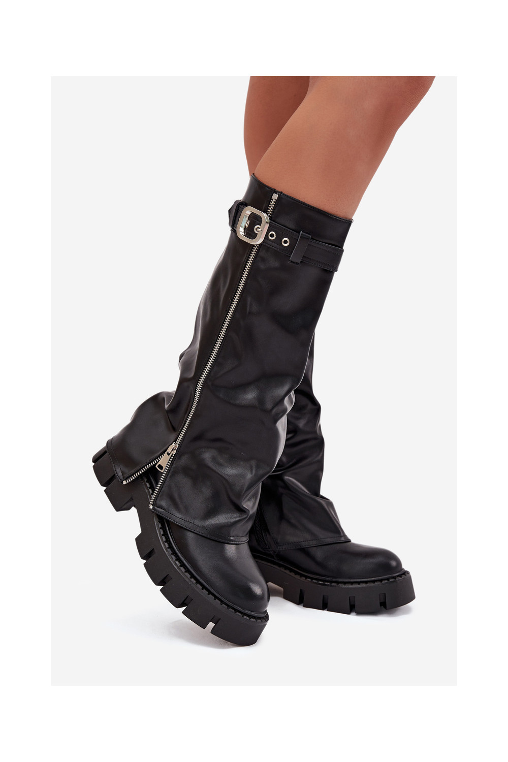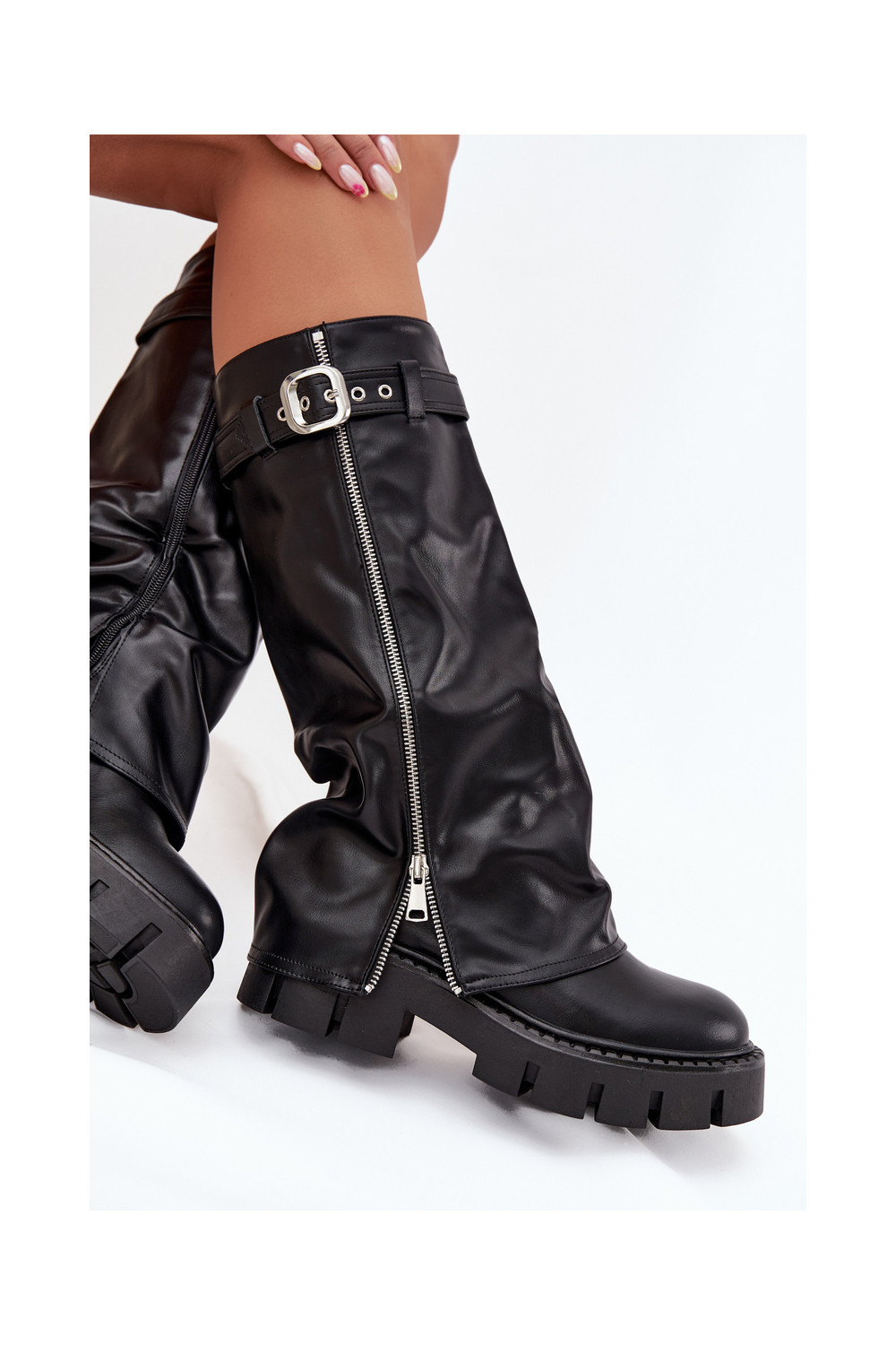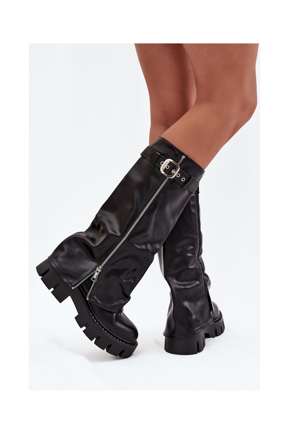 Mustad sooja voodriga kõrged saapad sisseehitatud choleikaga, kinnitustega ja hõbedase lukuga Armena