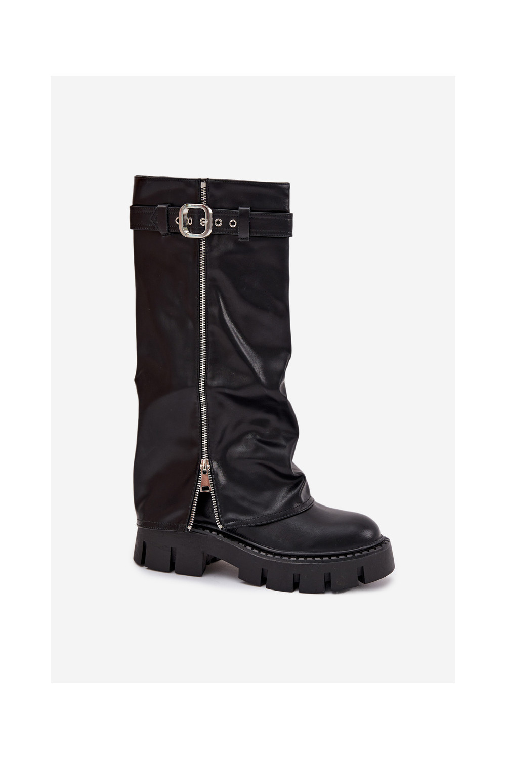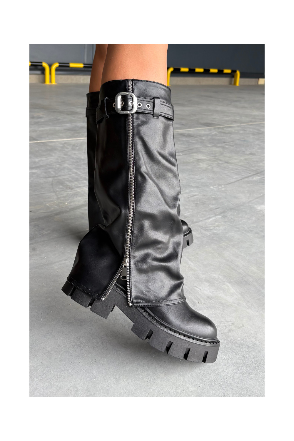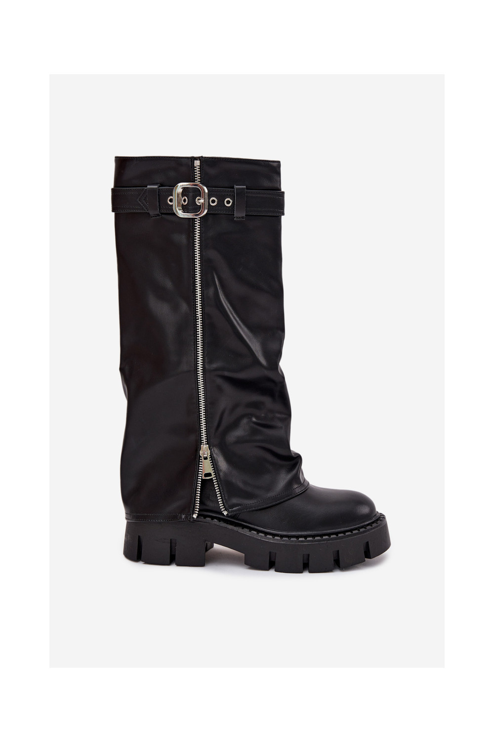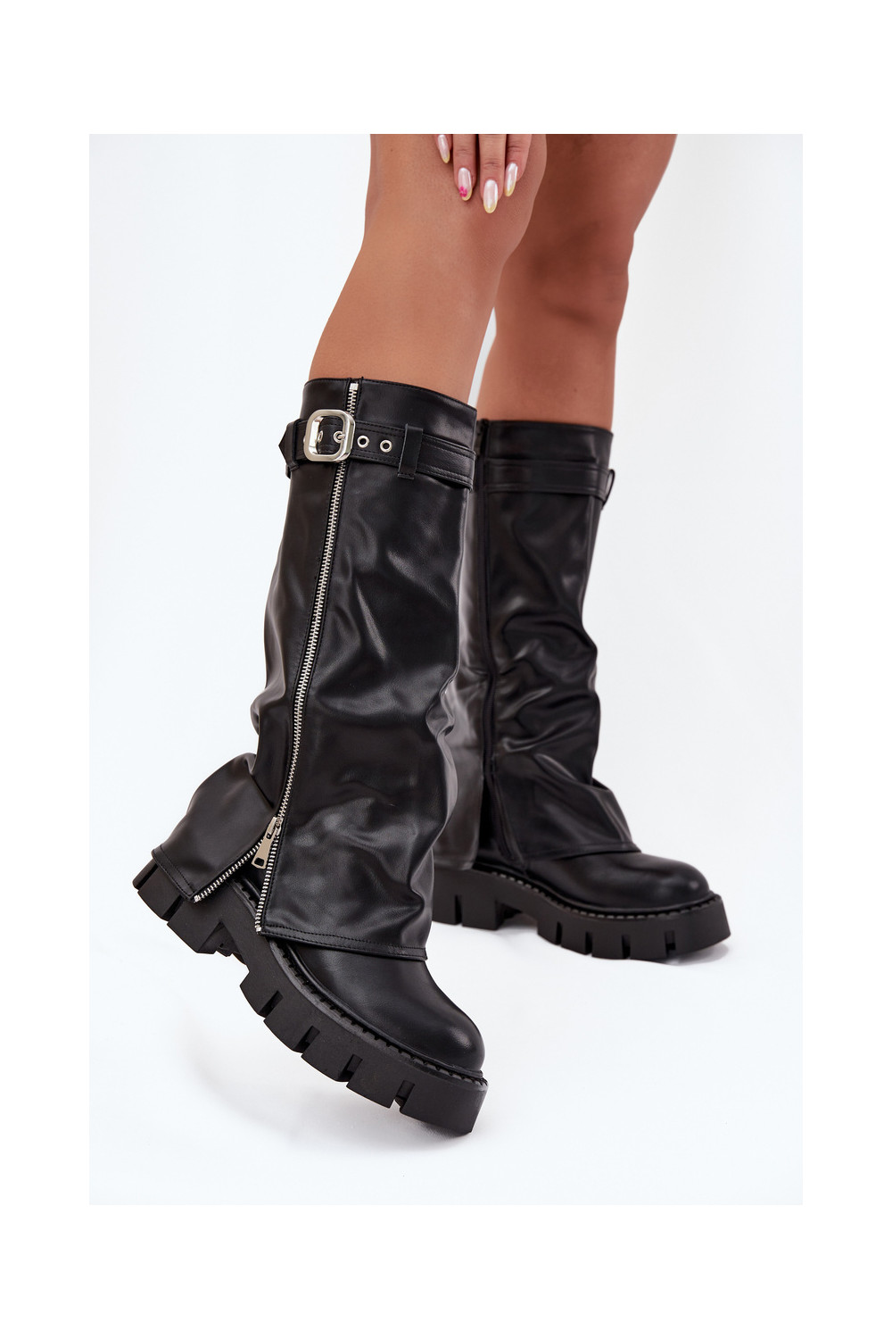 Mustad sooja voodriga kõrged saapad sisseehitatud choleikaga, kinnitustega ja hõbedase lukuga Armena