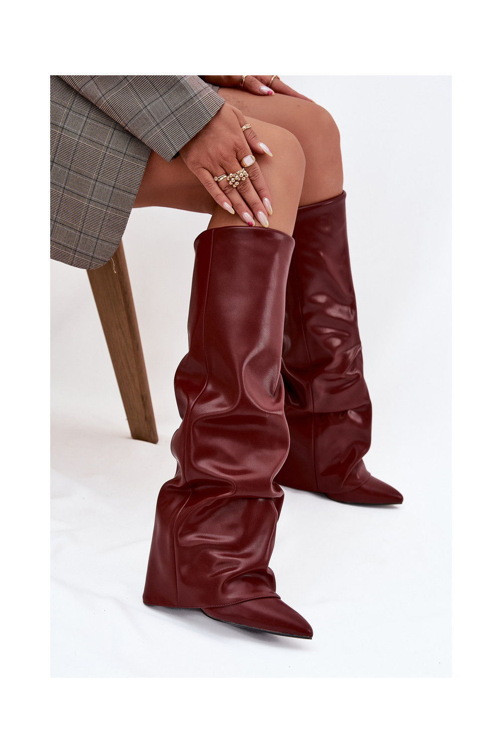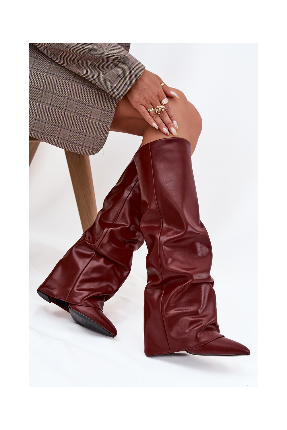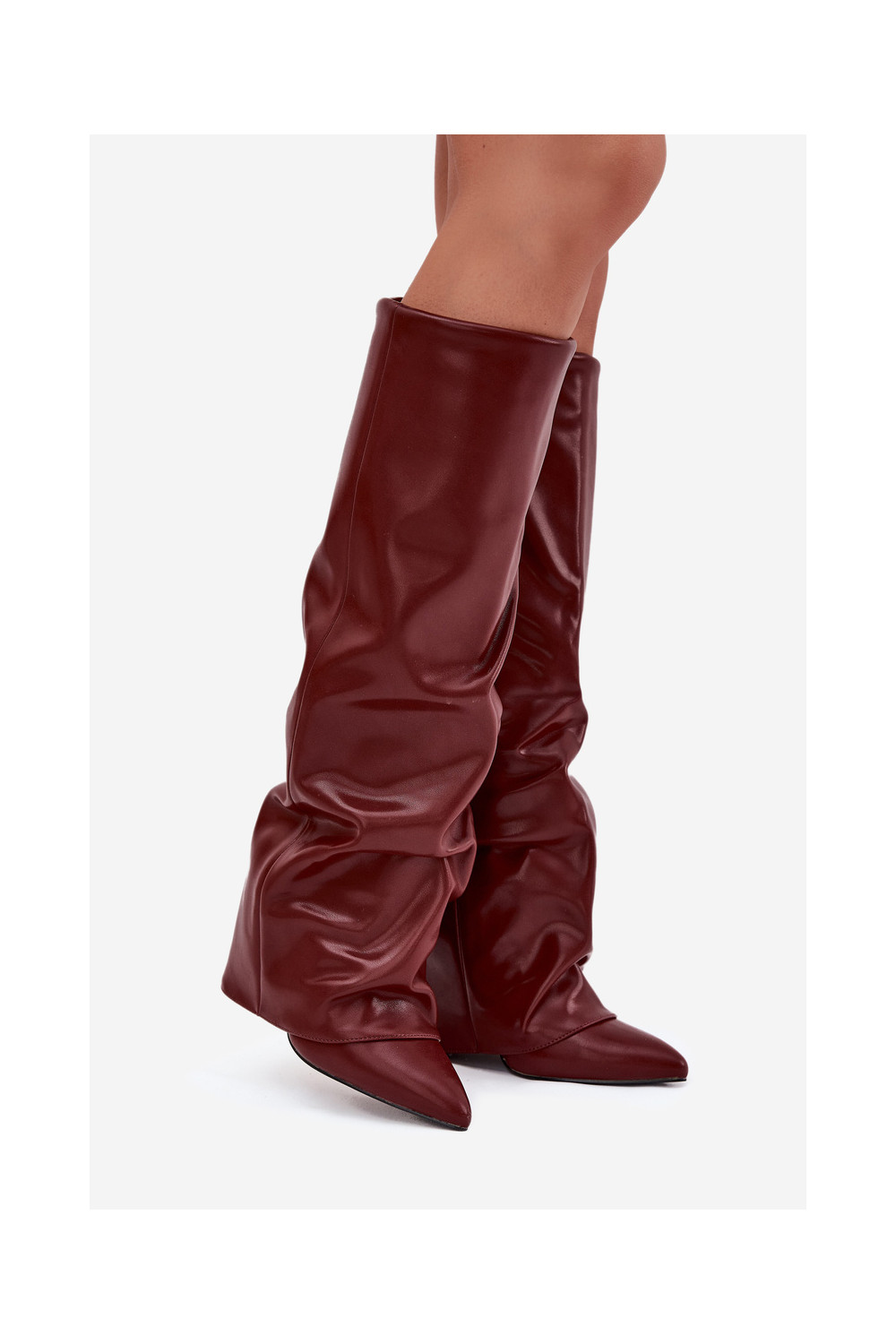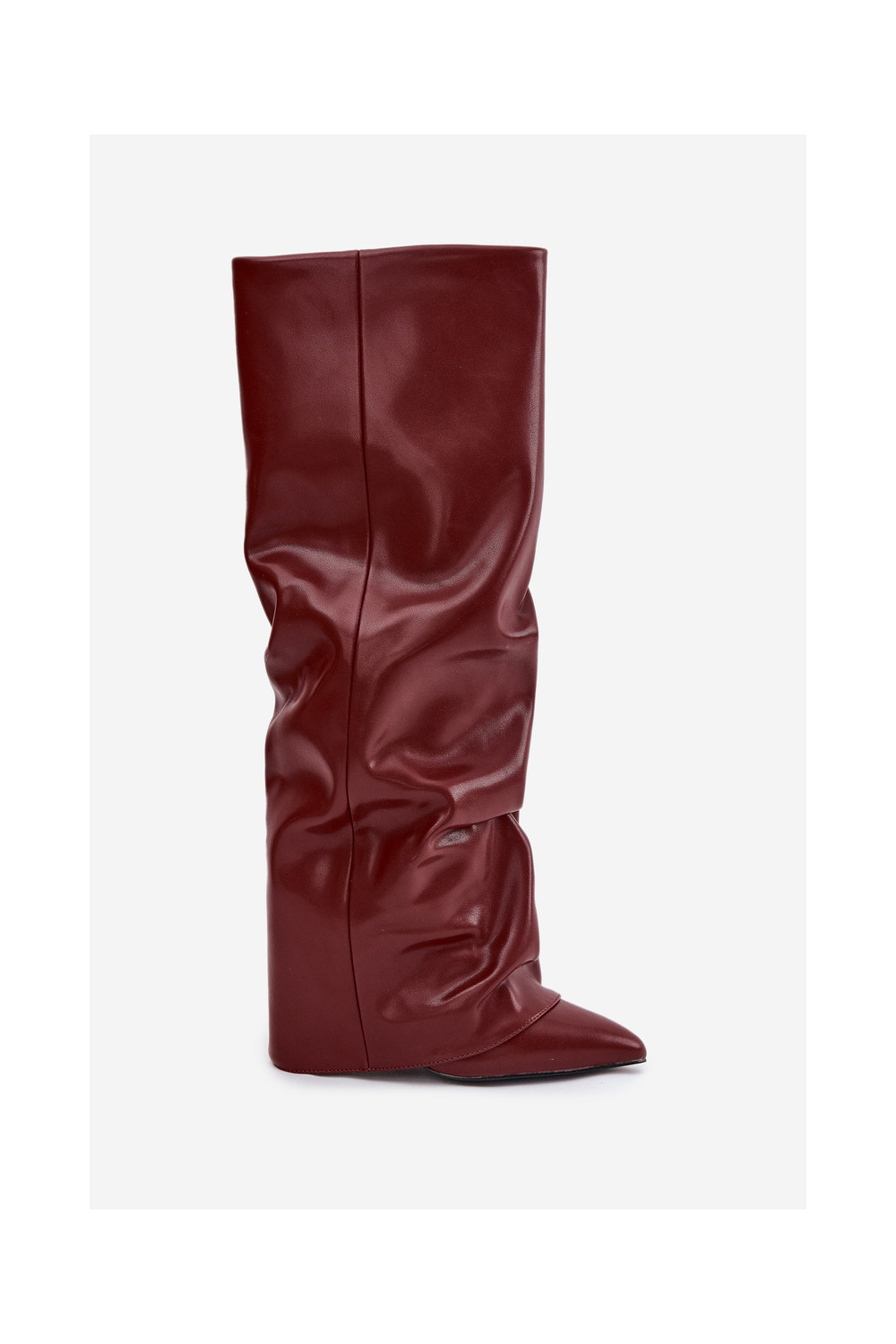 Insulated Women's Boots with Rolled Shaft on a Heel Bordeaux Elivira