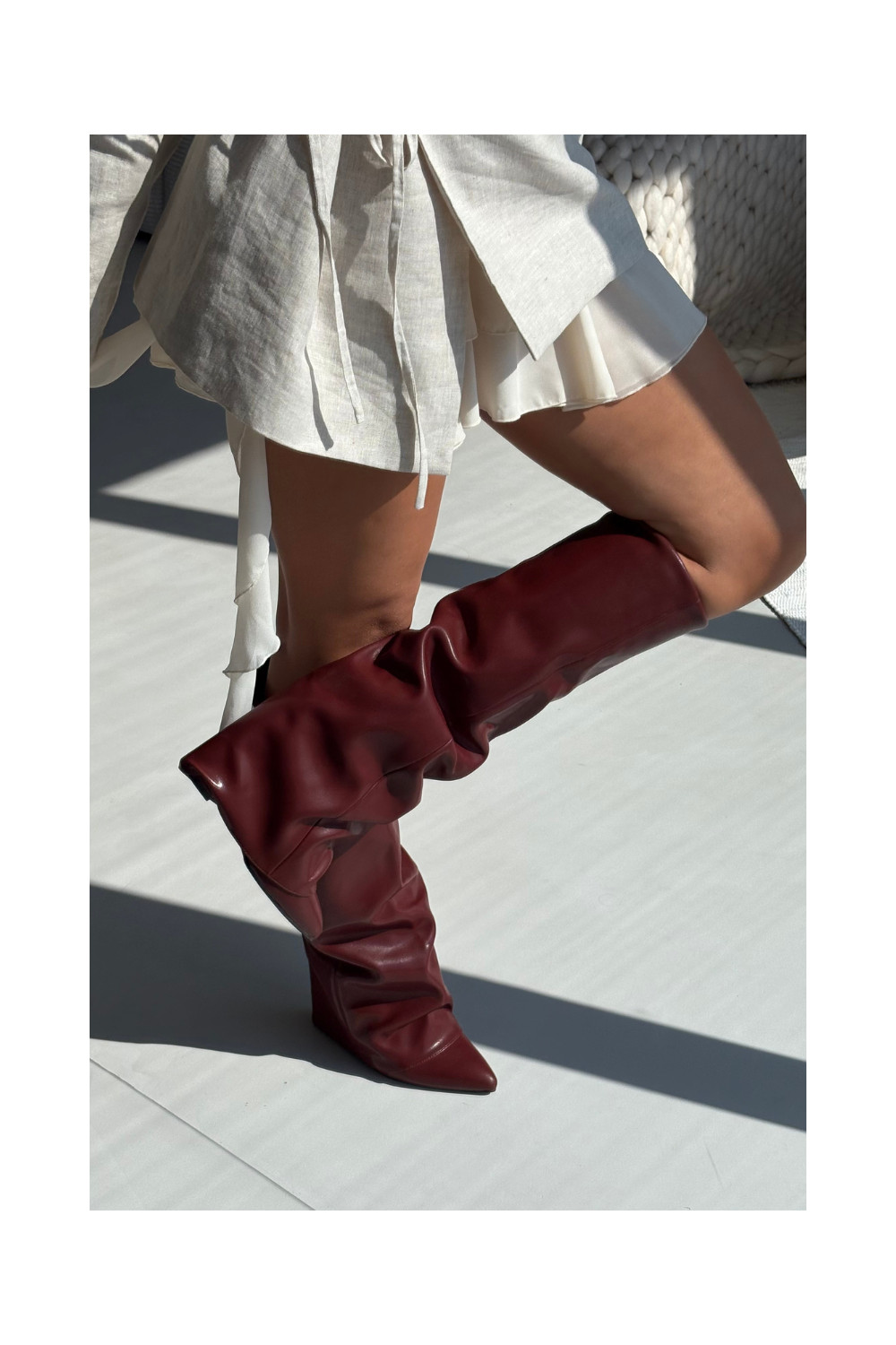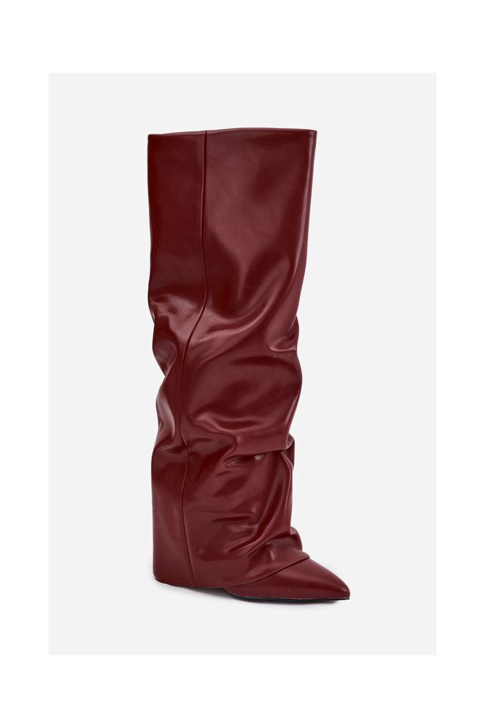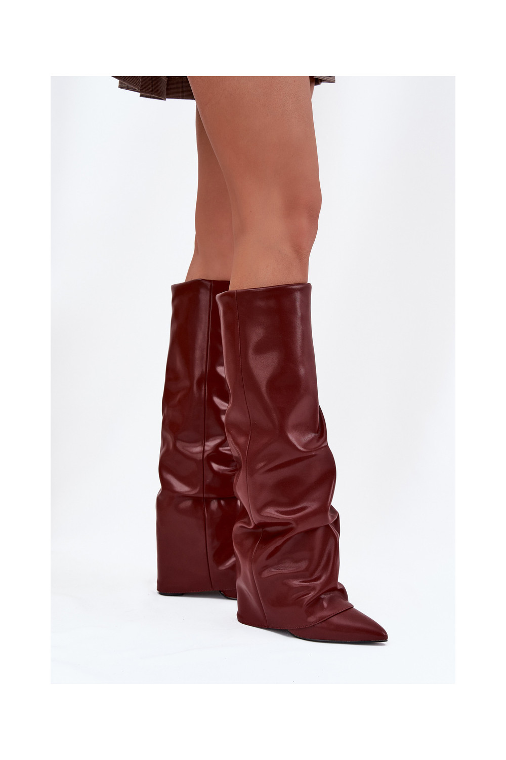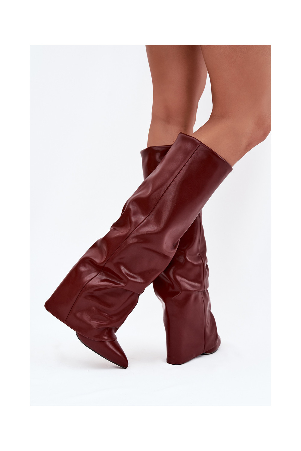 Insulated Women's Boots with Rolled Shaft on a Heel Bordeaux Elivira