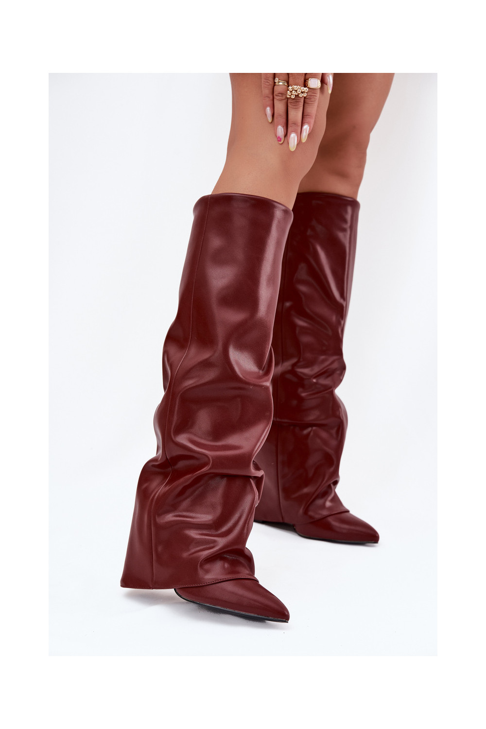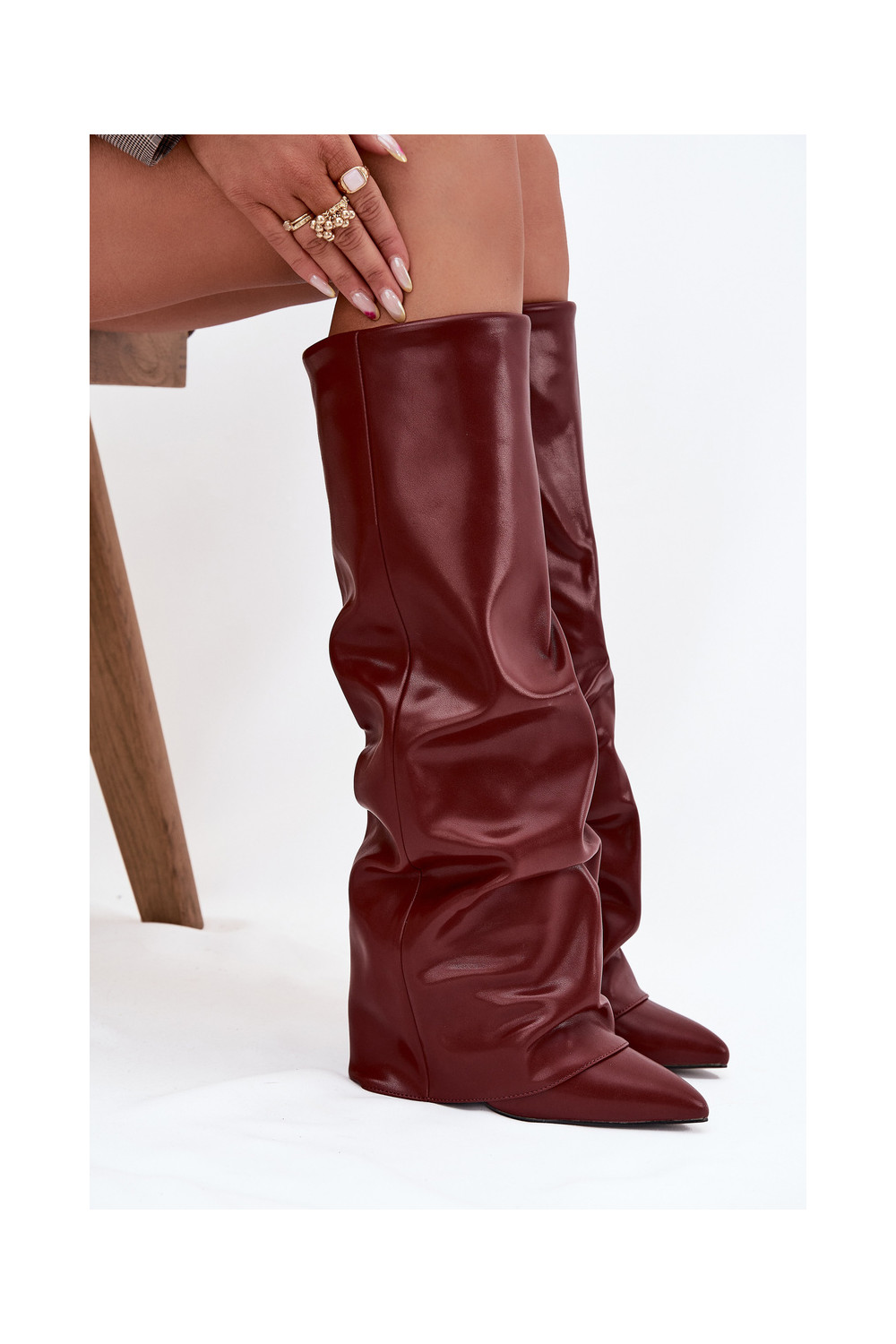 Soojendusega naiste pikad saapad sisseehitatud cholewaga ja kontsadega, bordoo, Elivira
