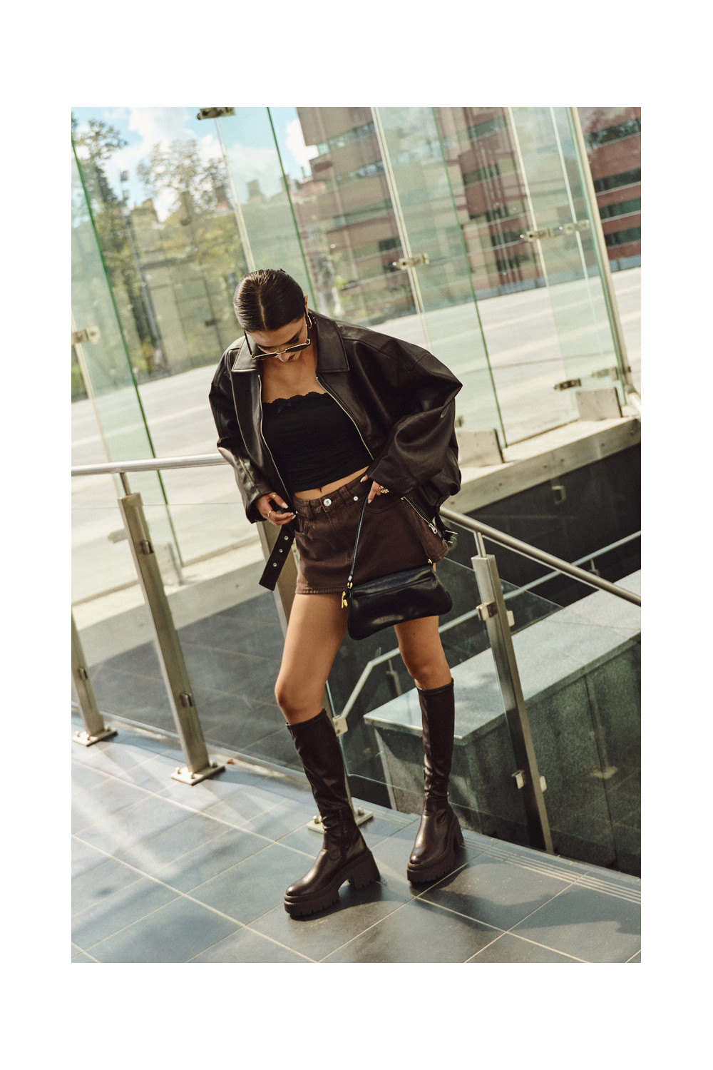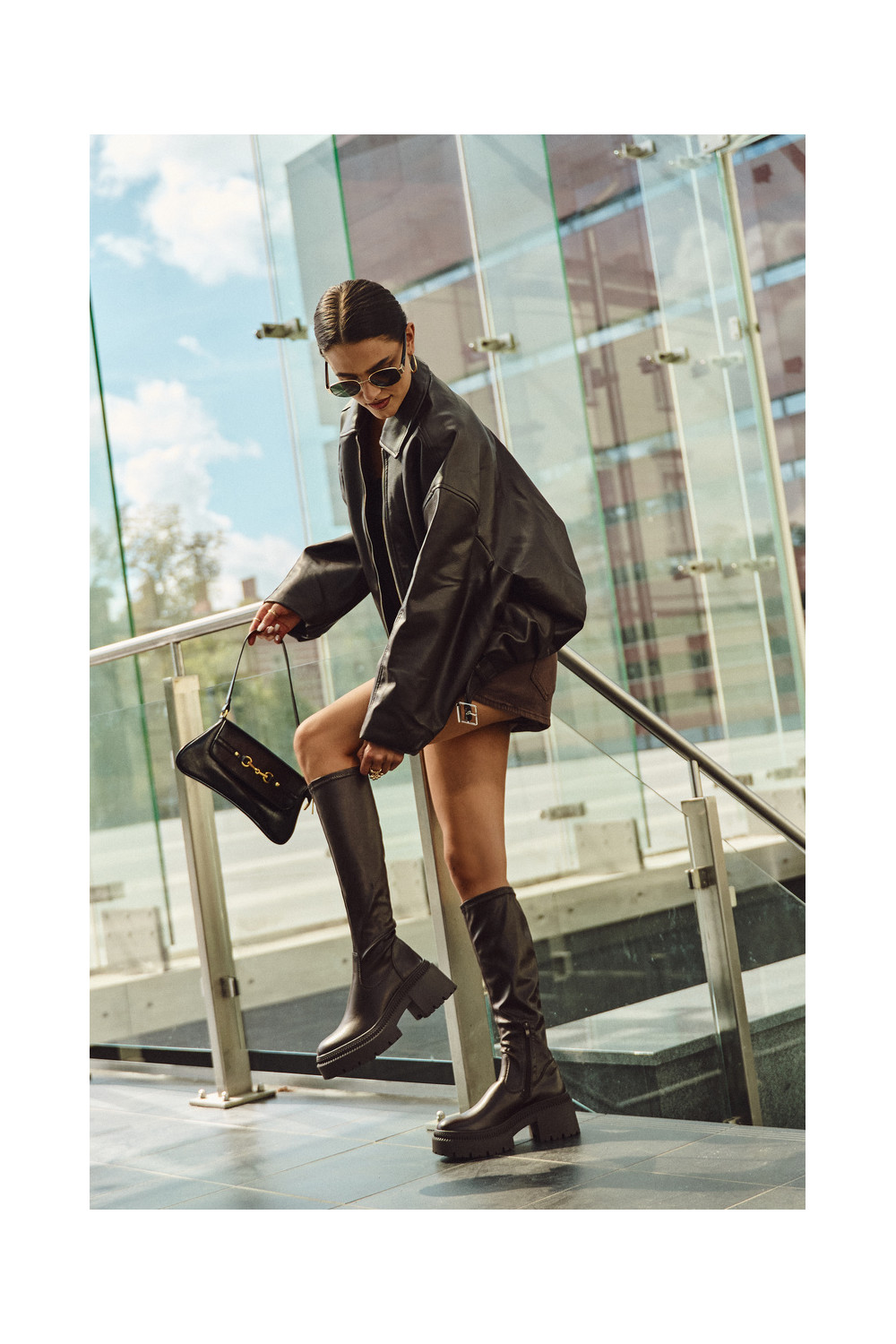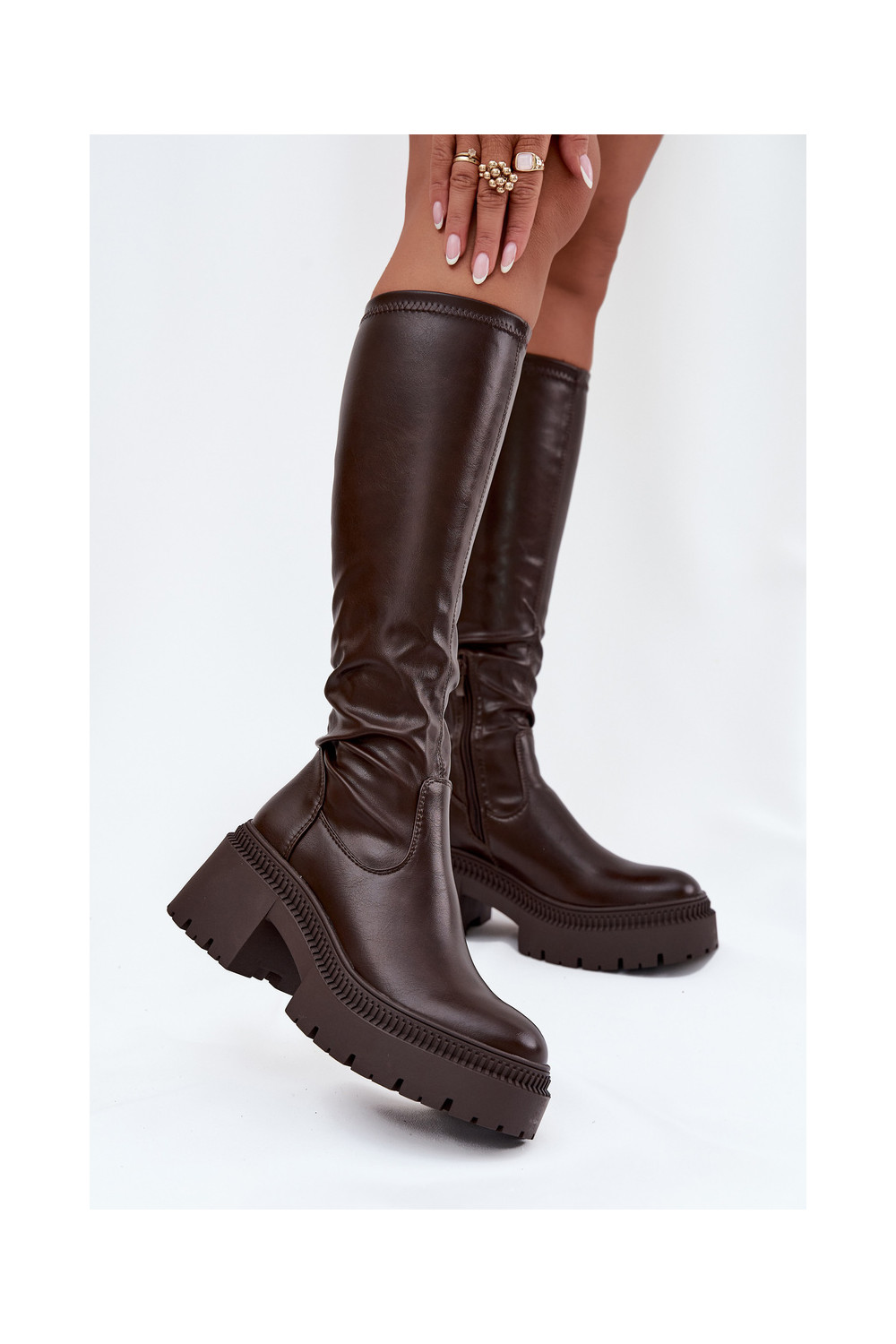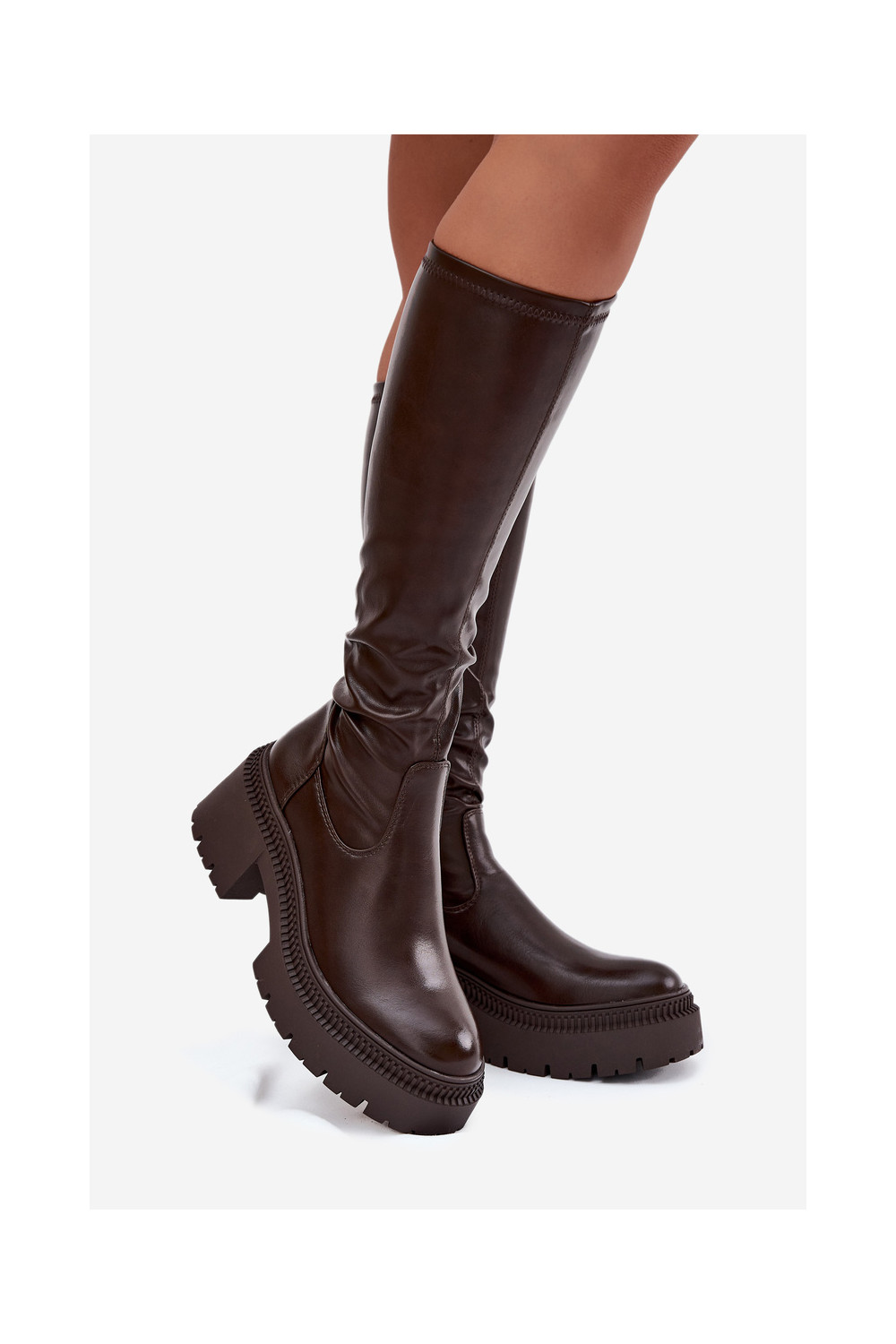 Naiste pikad saapad massiivsete kontsade ja platvormiga slip-on mudel pruuni värvi Florinne