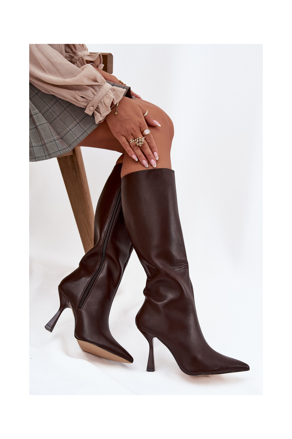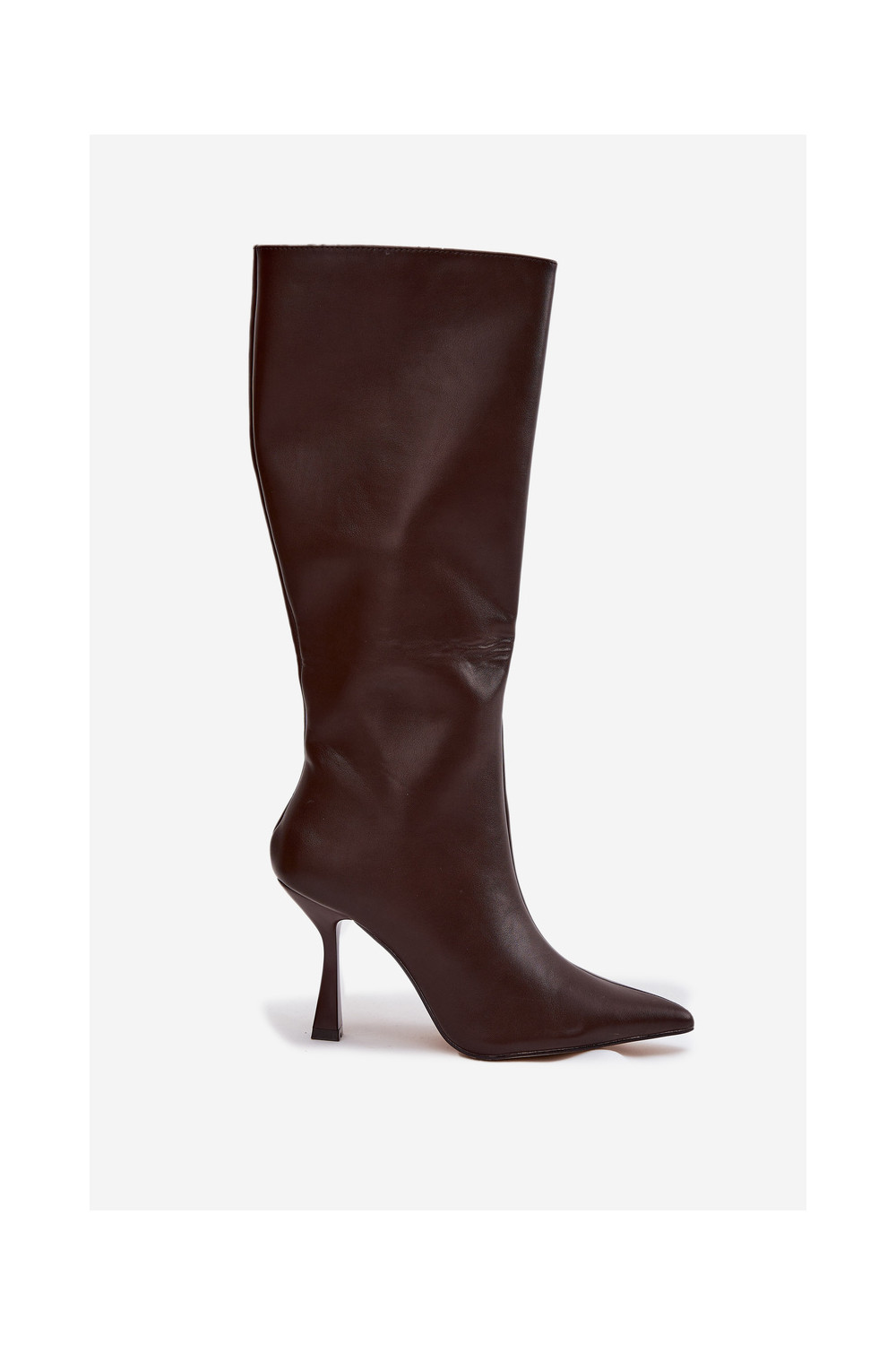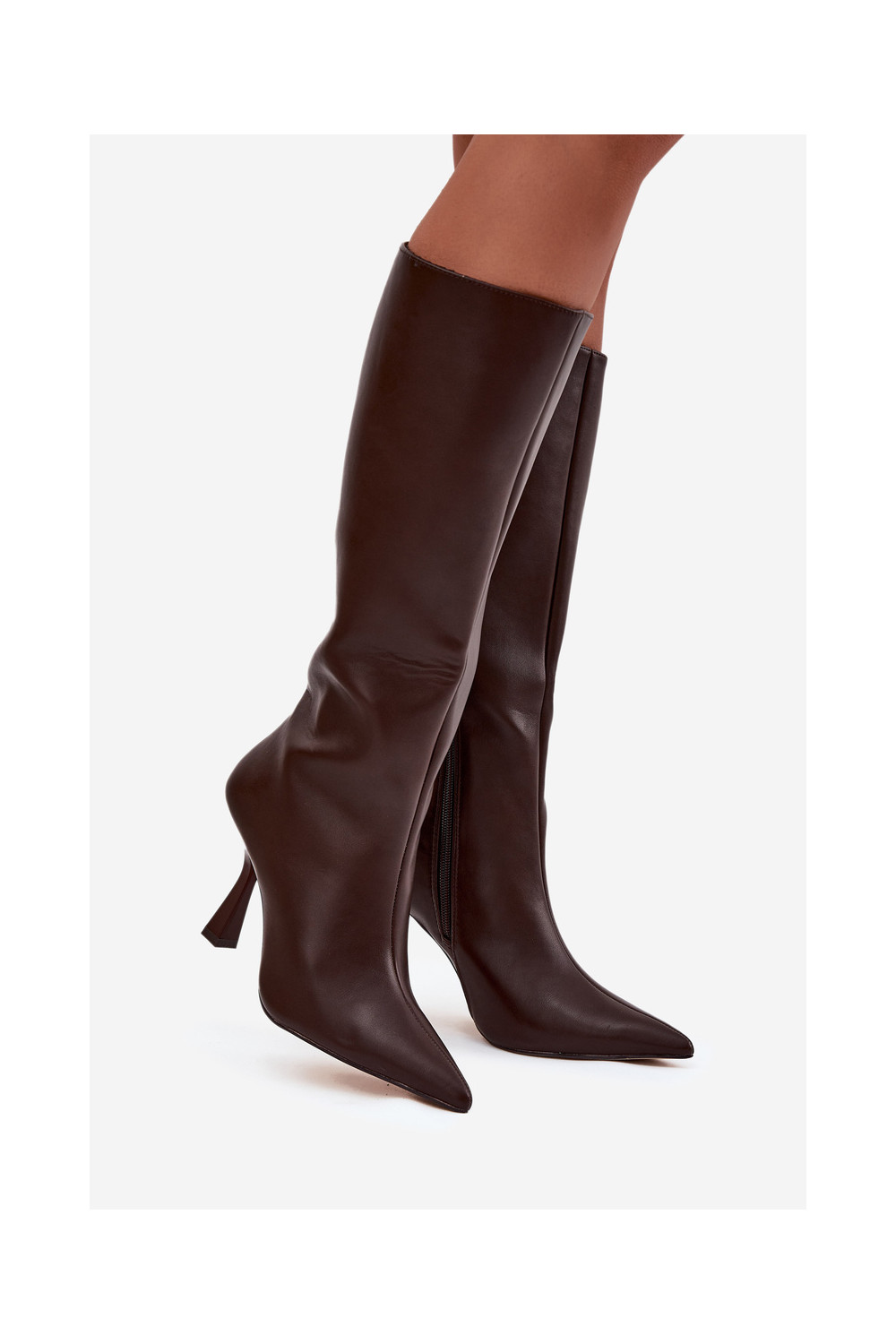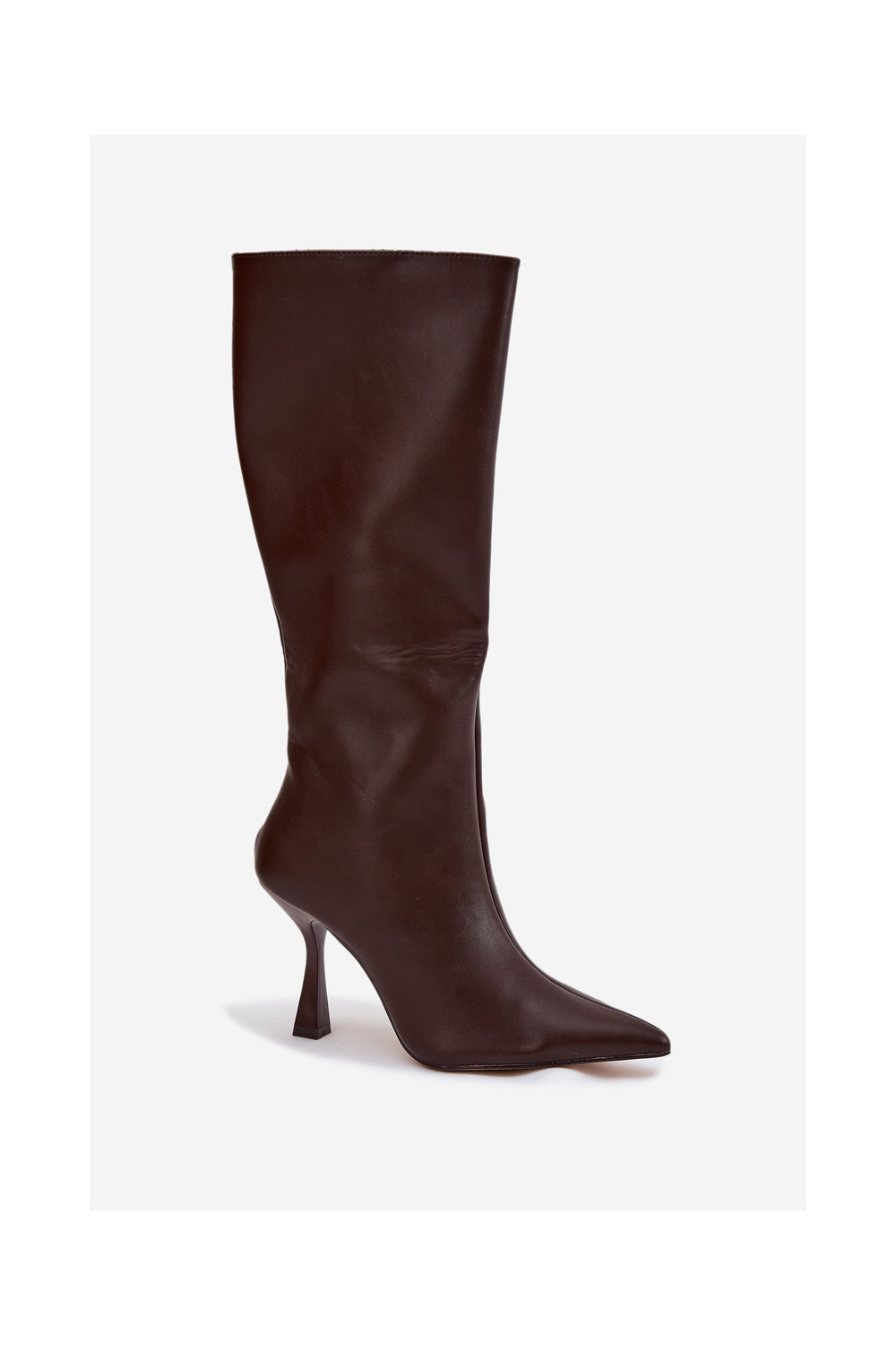 Šokolaadivärvi naiste pikad saapad kitsaste kontsadega kuni põlveni Vionette