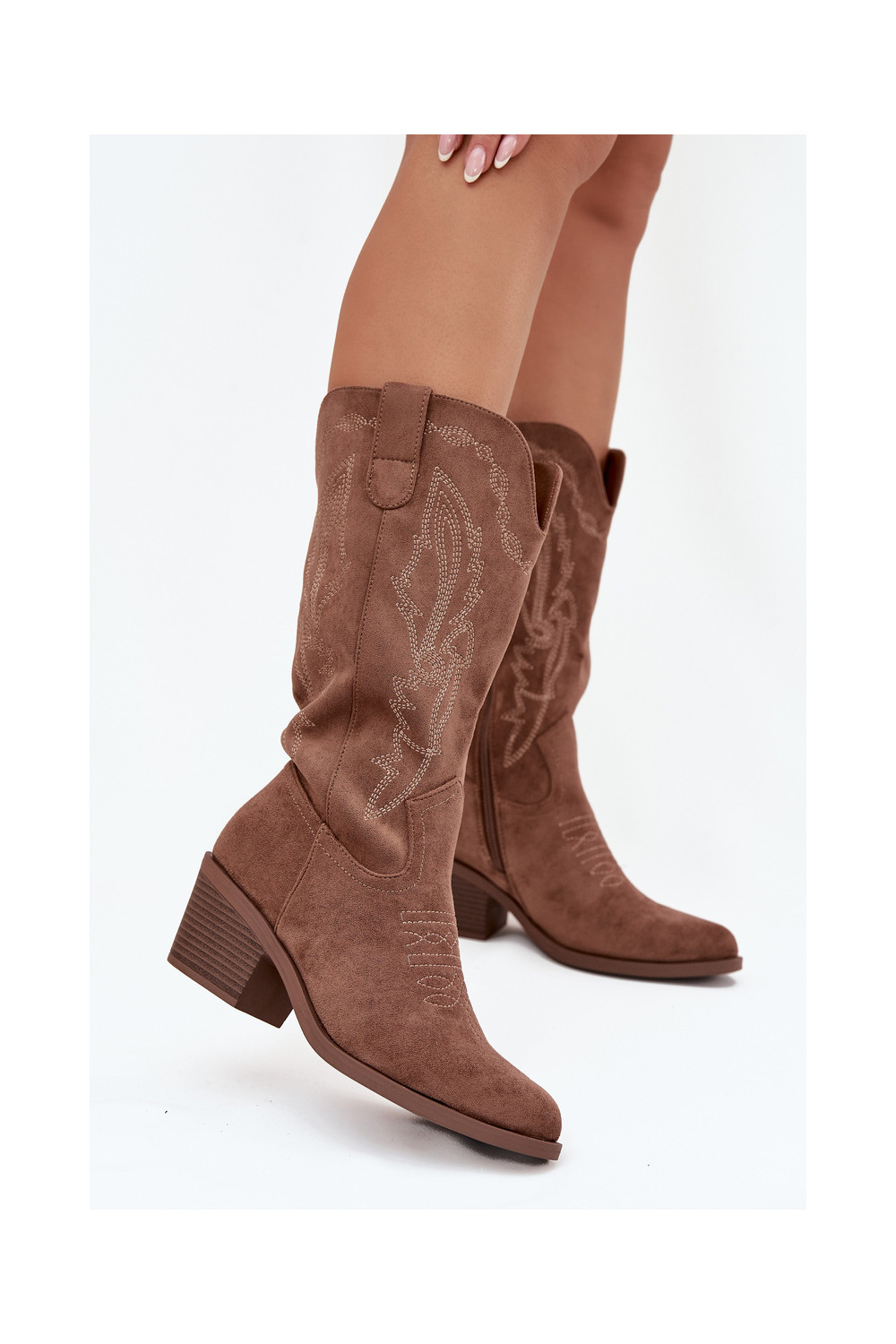 naiste kõrged cowboy-stiilis saapad kontsadega soojendatud Vinceza 16508 beeži värvi