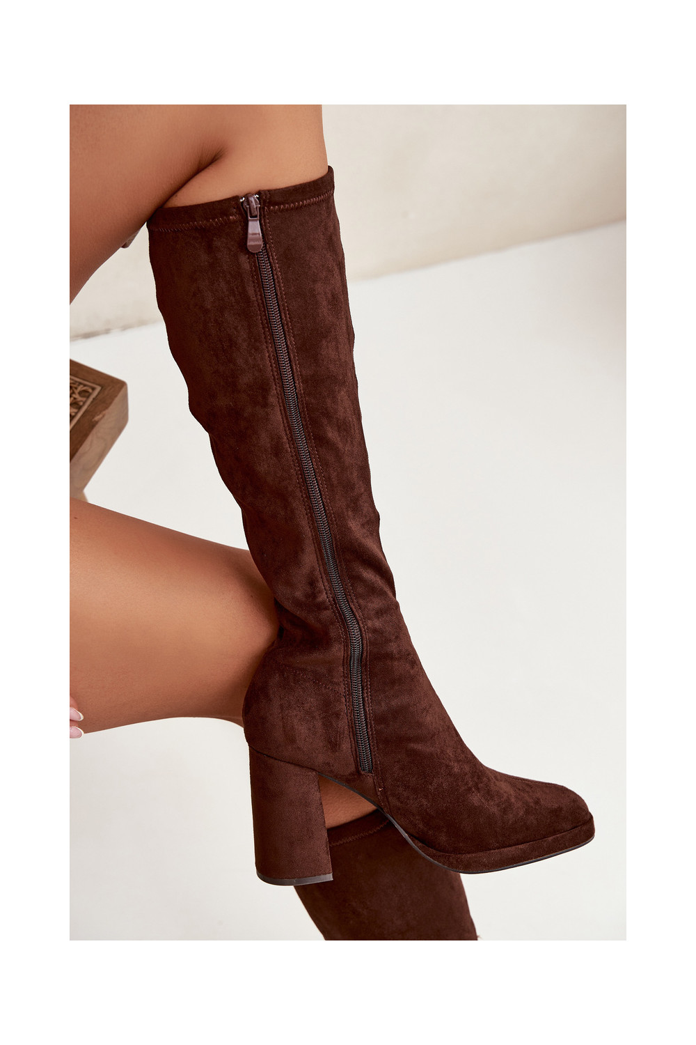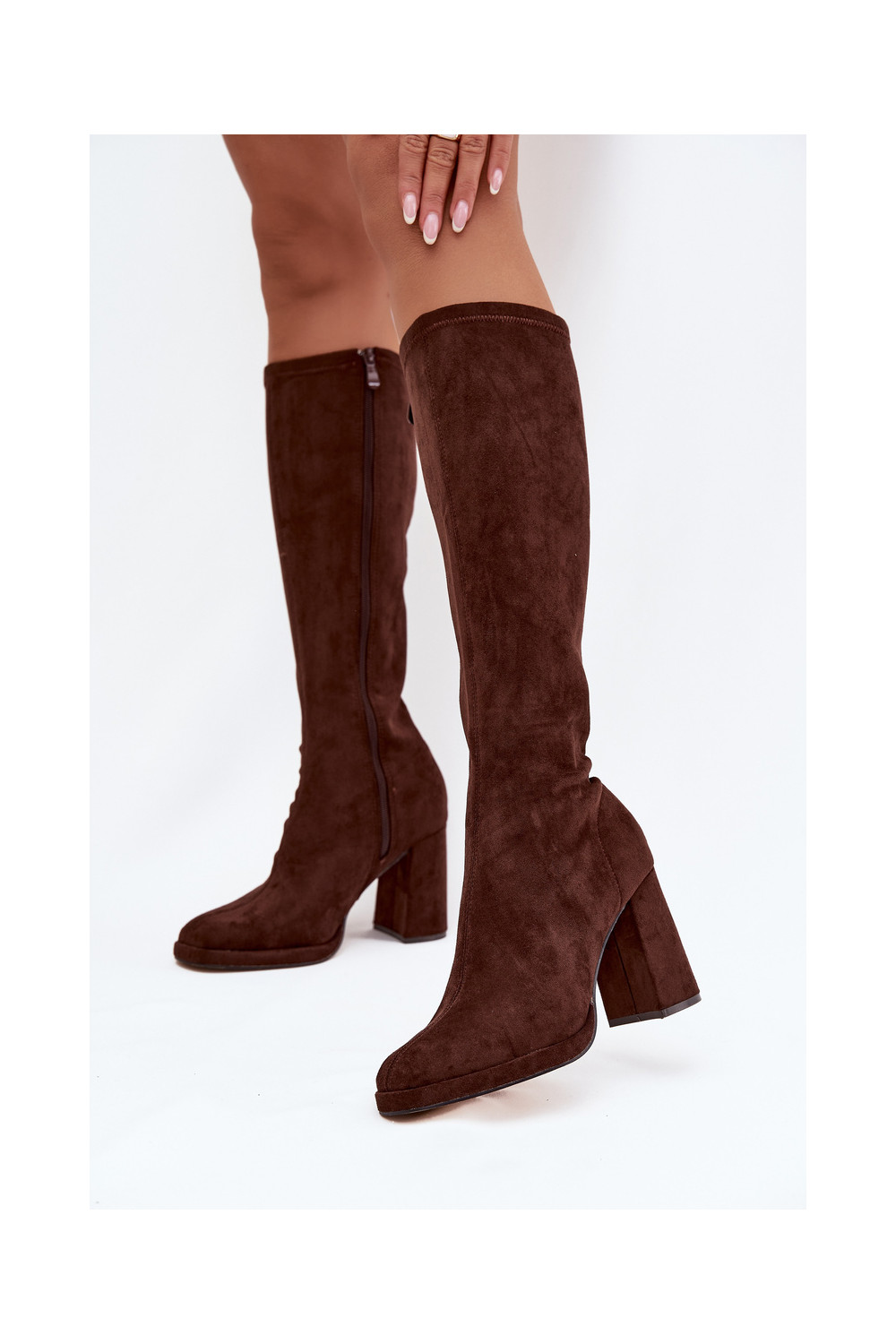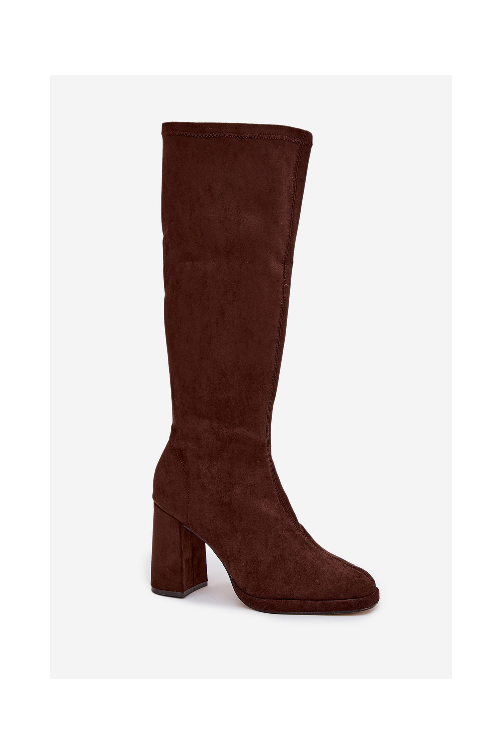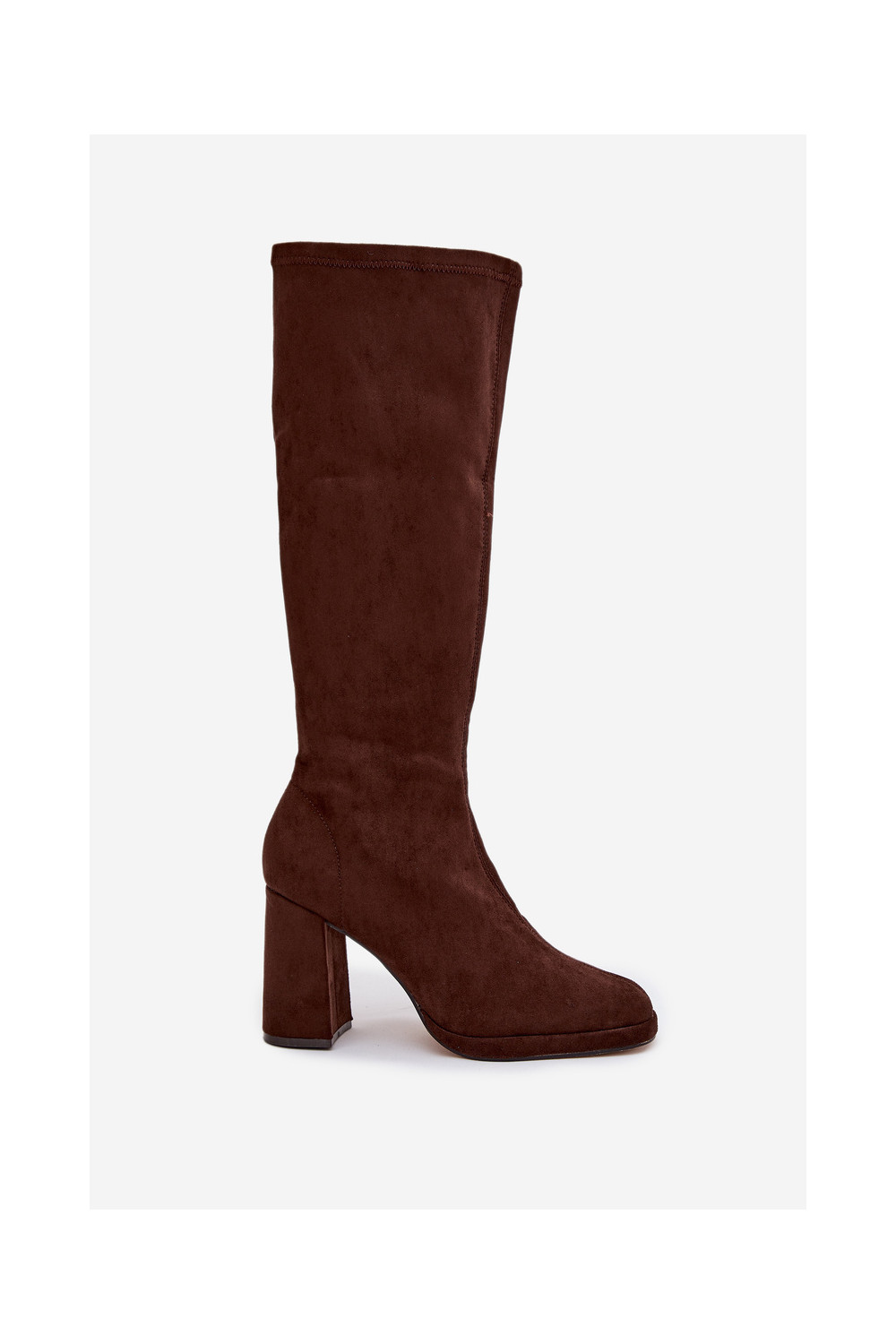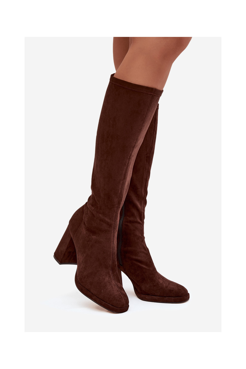 Naise pikad saapad õmblustega postkontsa pruuni värvi "Brivana"