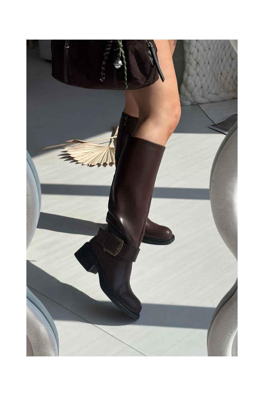Soojad naiste üle põlve saapad Klocke kinnitustega šokolaadi värvi Raphaela